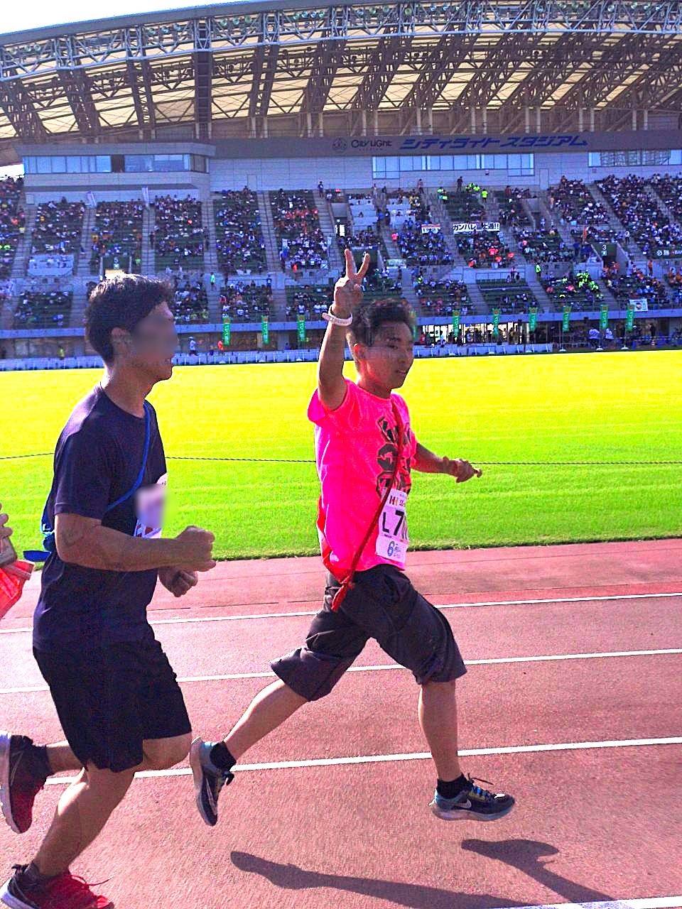 これは小学生以上・性別は問わない1チーム4~12人でたすきをつなぎ、スタジアム特設コース(1周約1.1km)を6時間でどれだけ周回できるかを全527チームで競い合うレースです。