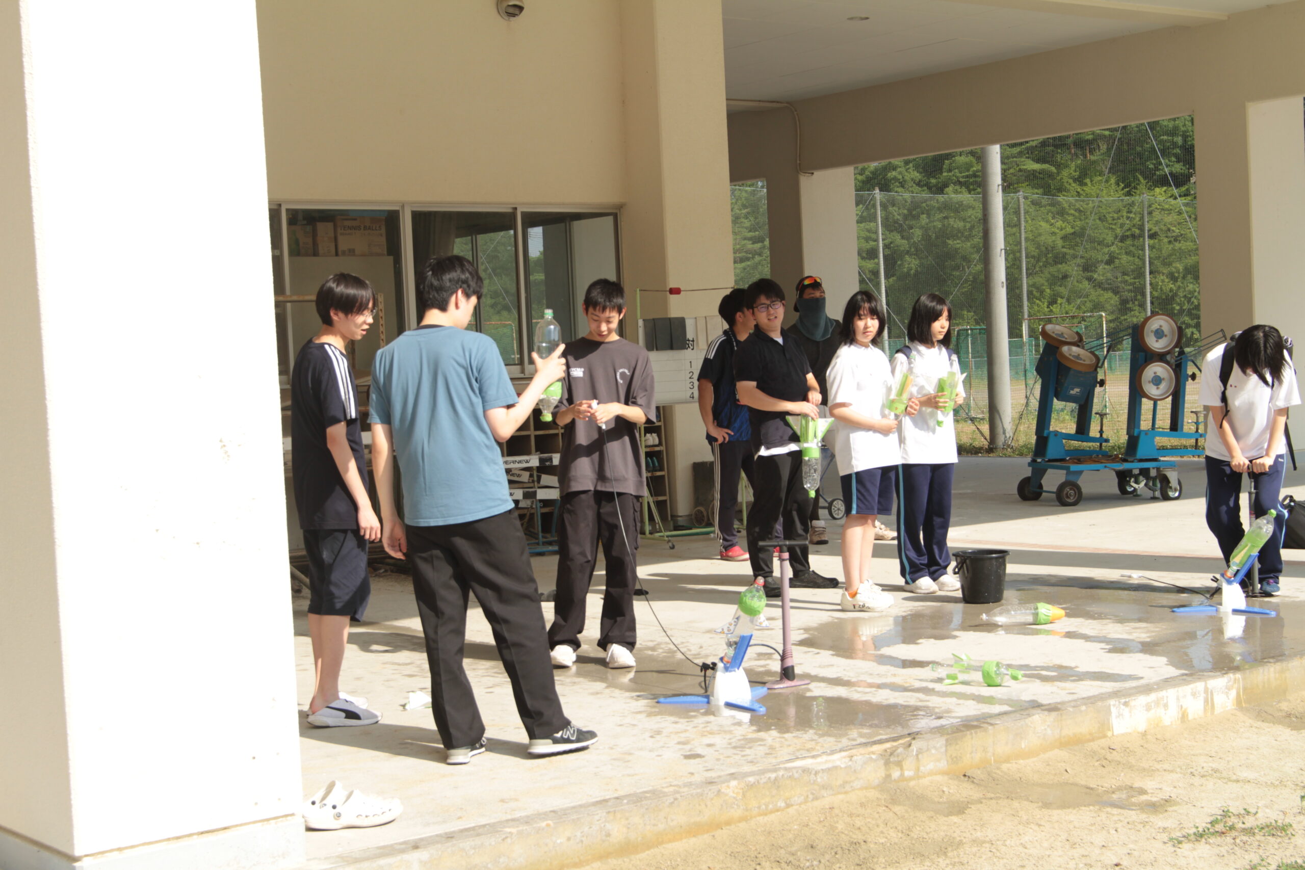 2日目の選択授業「理科実験」は「ペットボトルロケットの飛行体験」でした。