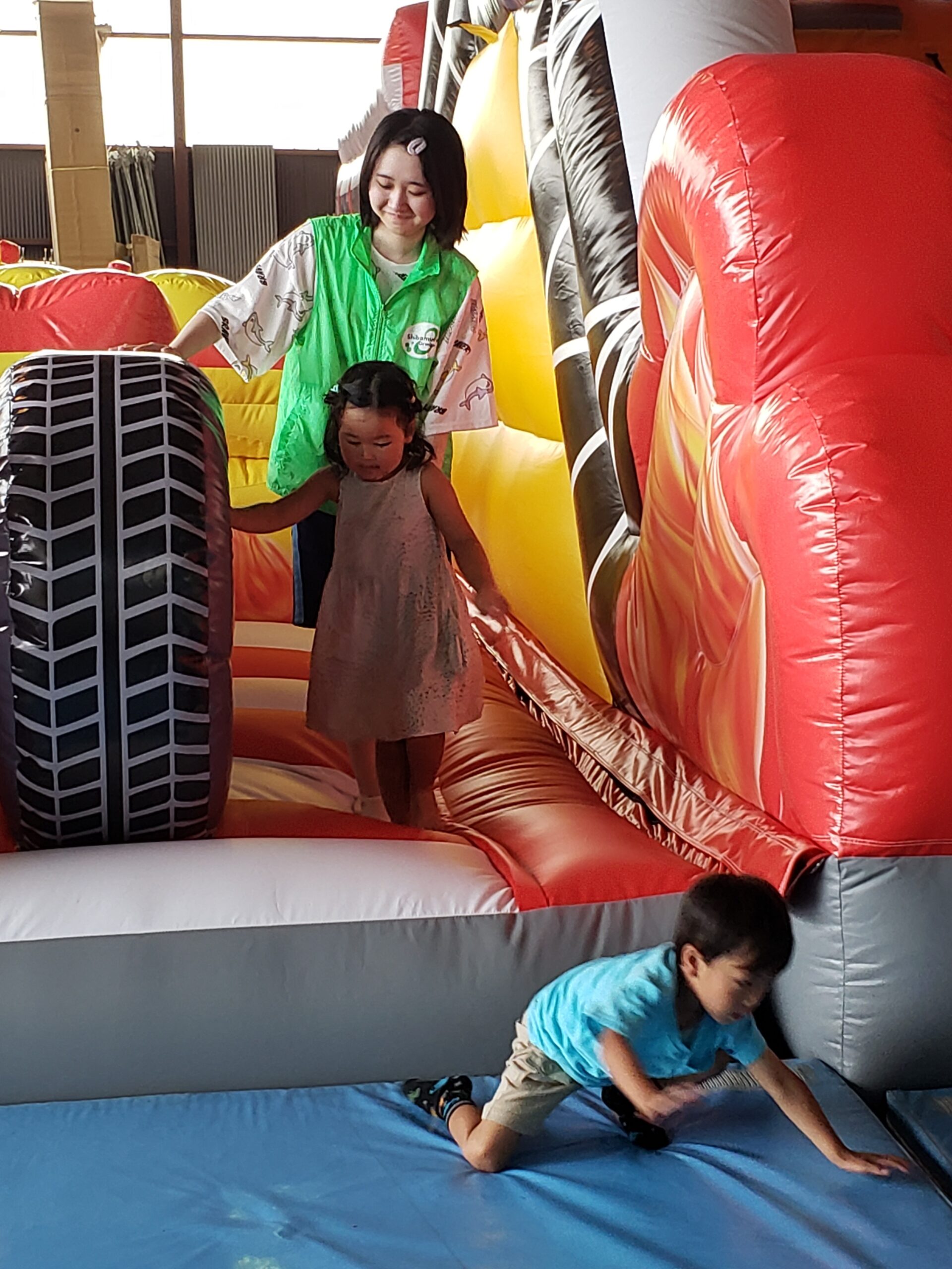 子どもたちと一緒に遊び、保護者の方に喜ばれていました。