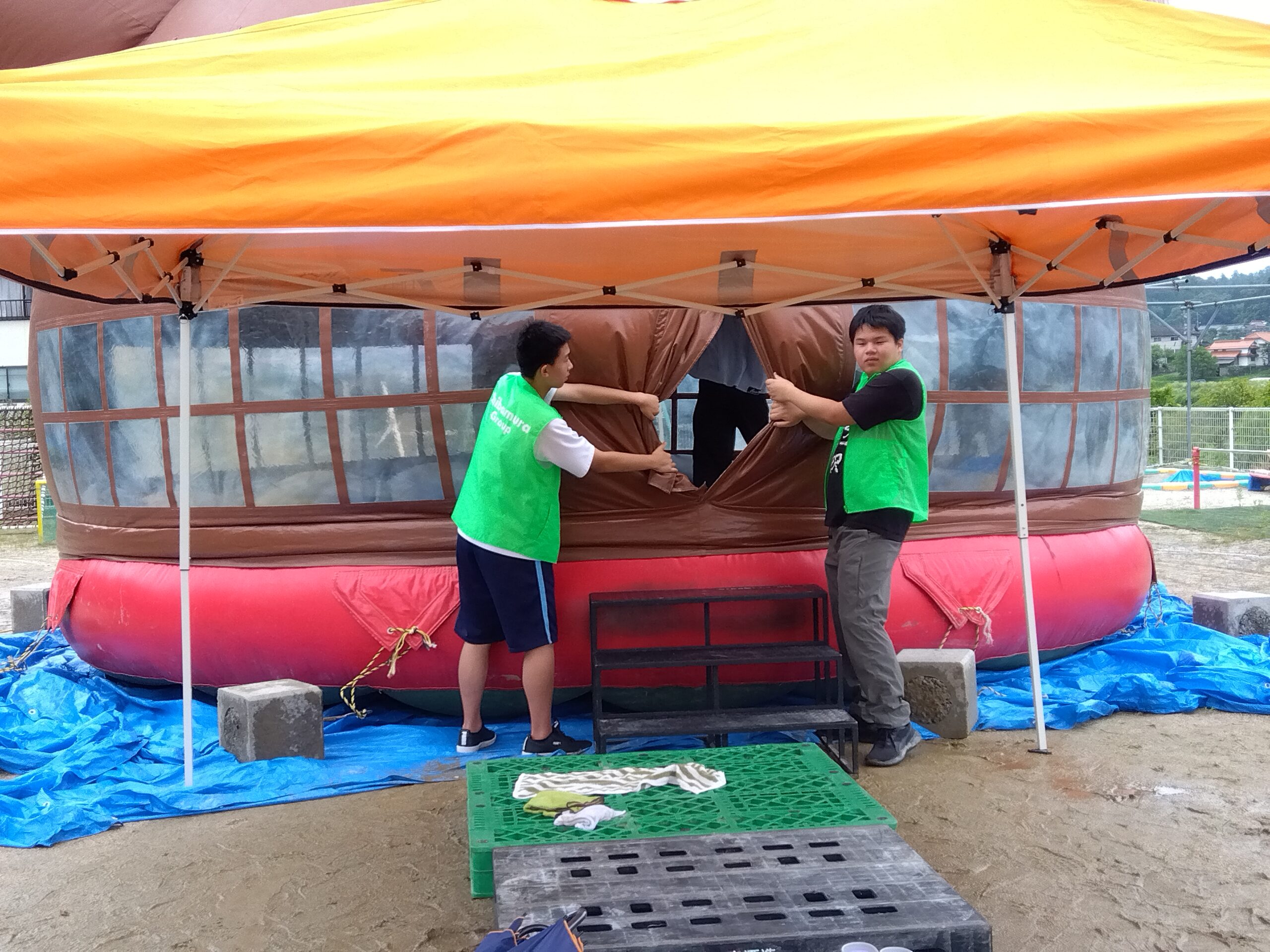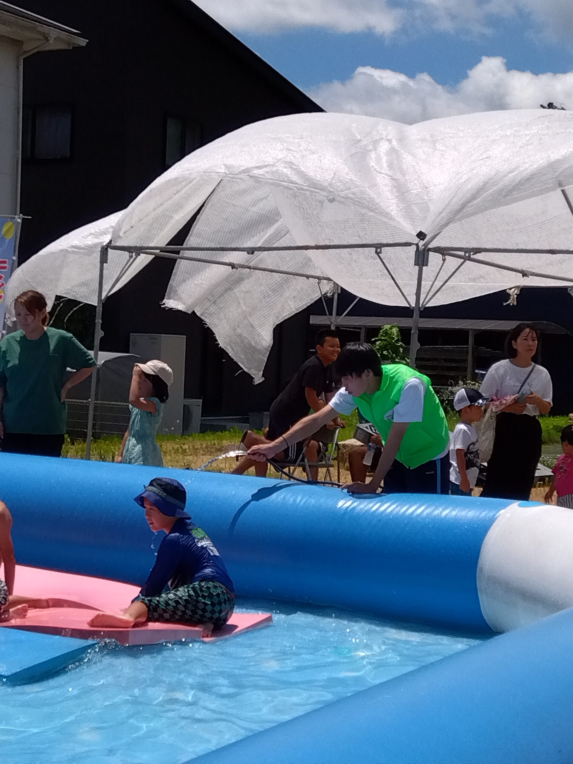 梅雨の時期であり、晴れたのは4日間のうち1日だけ。この日はプールが大人気でした。