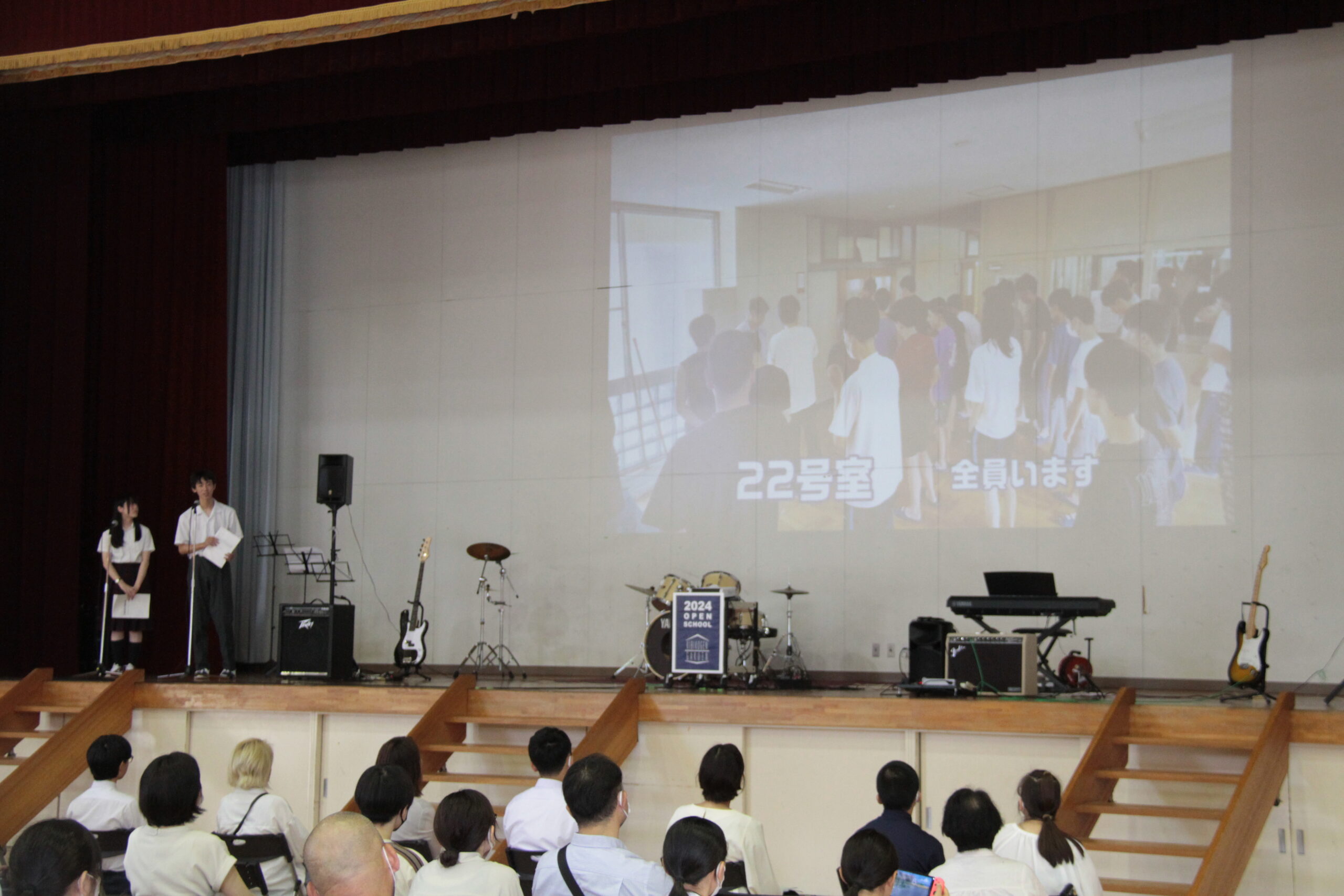オープニングの学校紹介、コースの説明など、2,3年が活躍してくれました。