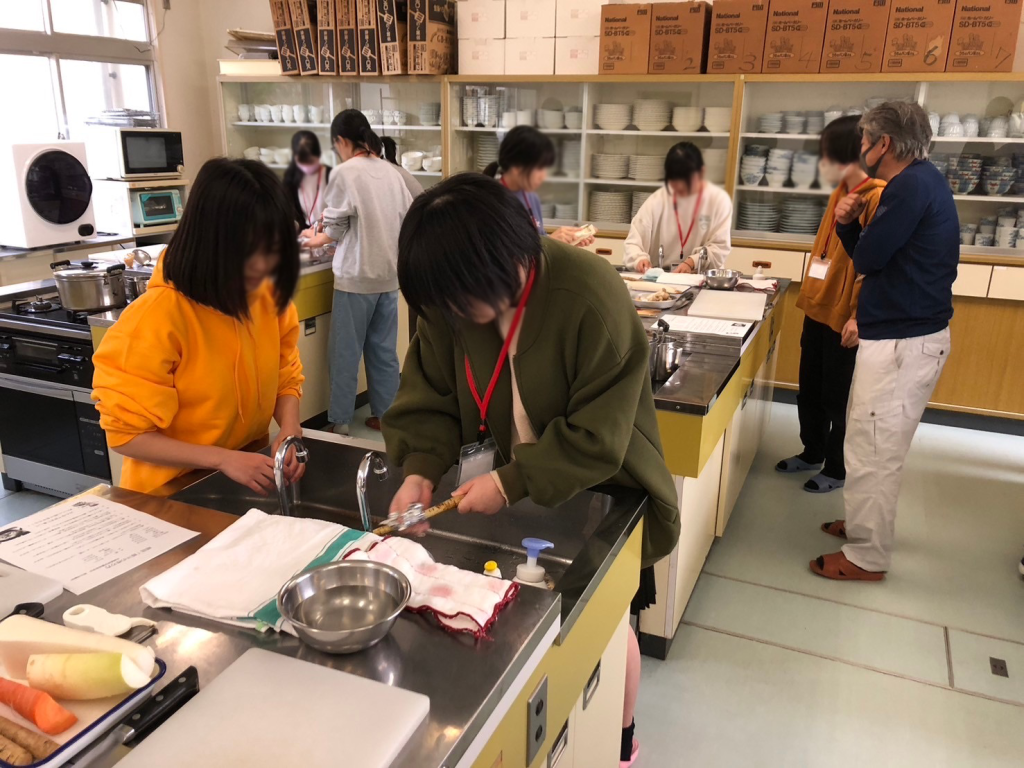 2日目の昼食はみんなで調理実習。自分たちで作った「豚汁」をみんなで楽しくいただきました。
