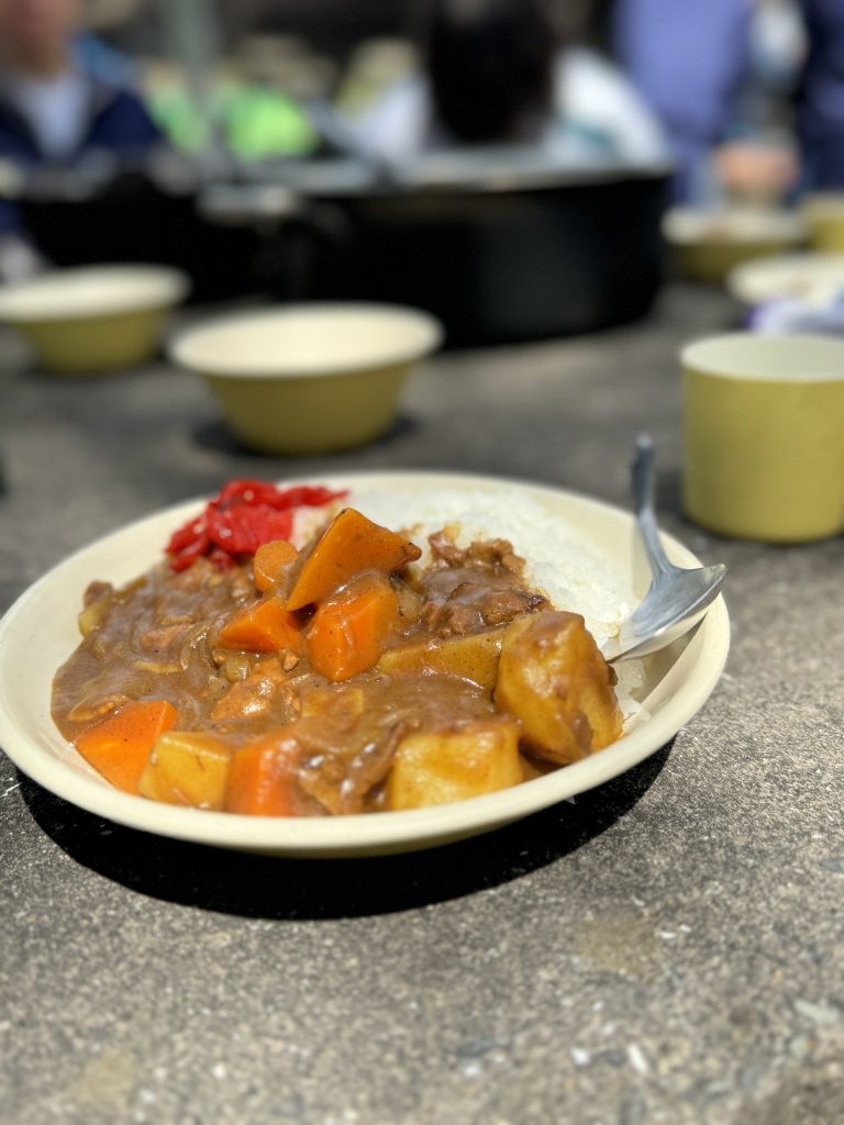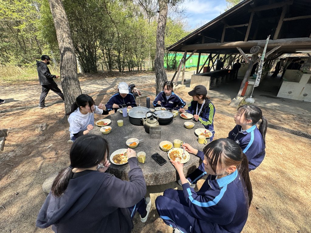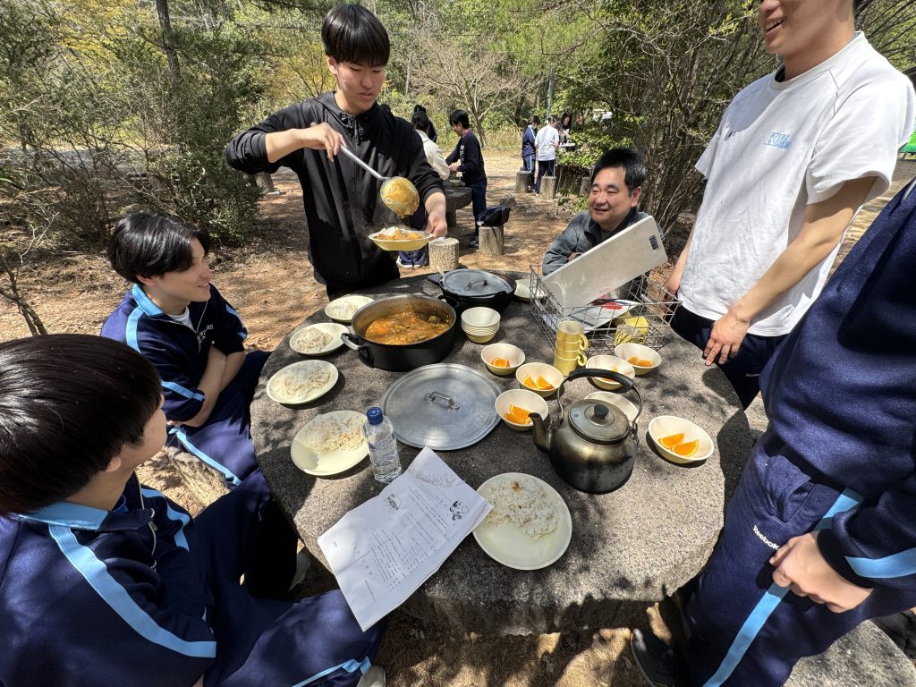 本日学年別研修が実施され、1・3年生は国立吉備青少年自然の家にてカレー作りを行いました。3年生は昨年度も行なっていたこともあり、非常に手際良く全員で協力してカレーを作ることができました。また、一部の生徒は1年生の班にリーダーとして入り指導していました。自分の経験をしっかりと伝えることができていました。
