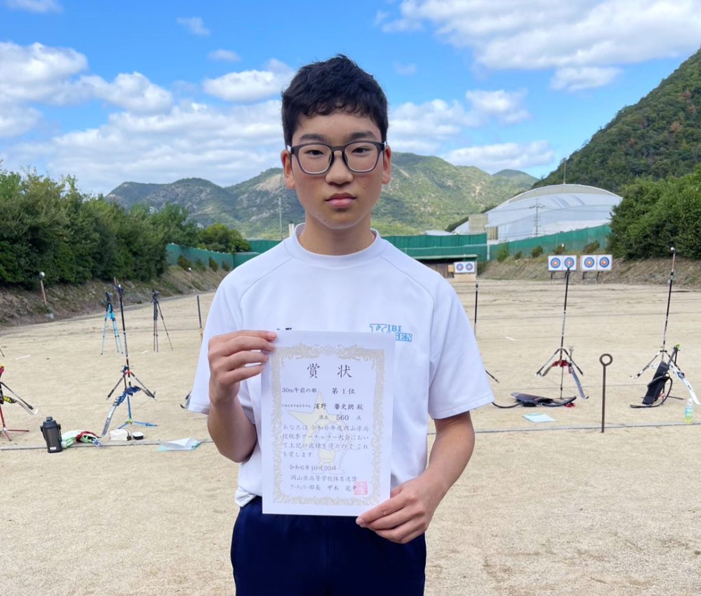 アーチェリー部1年生の濱野 馨史朗さんが、10月20日に開催された令和6年度岡山県秋季アーチェリー大会で第1位となりました!また、10月27日に開催されたチャレンジカップでも、第2位となるなど、快進撃が続いています!現在は、30mの部ですが、今後の70mの部での活躍も期待しましょう!