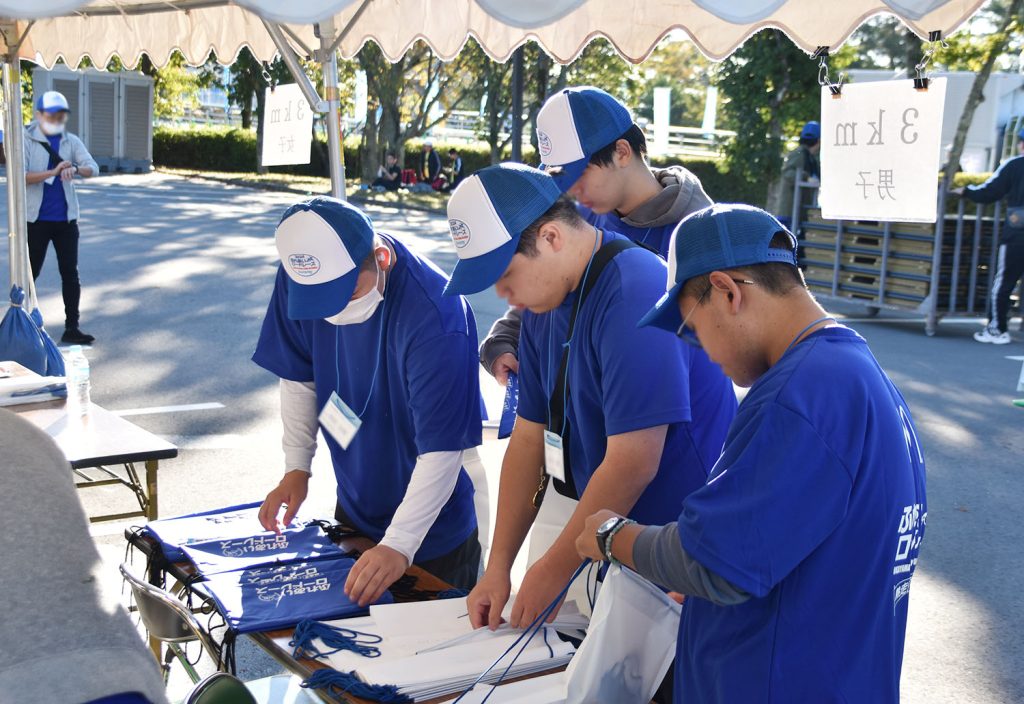 選手の皆さんにお渡しするグッズのセットをお手伝いします
