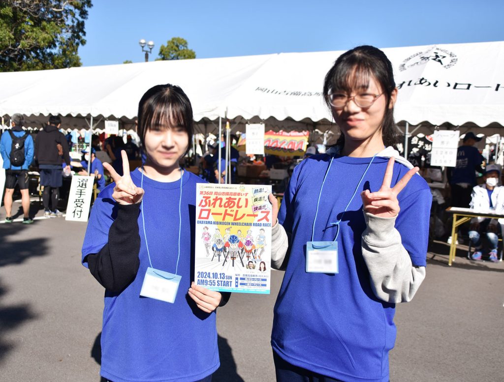 第36回岡山吉備高原車いすふれあいロードレースが開催されました。爽やかな秋晴れの中、県内外から多くのアスリートの皆さんが吉備高原に集結して白熱のレースが繰り広げられました!本校からは生徒・教職員合わせて31名が大会の準備や運営のボランティアに参加しました。前日準備からはじまり、受付や安全確保、着ぐるみ、梨の提供など様々な活動を通して、参加した生徒たちはたくさんの刺激や感動をいただいたのではないかと思います。