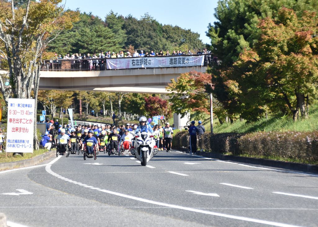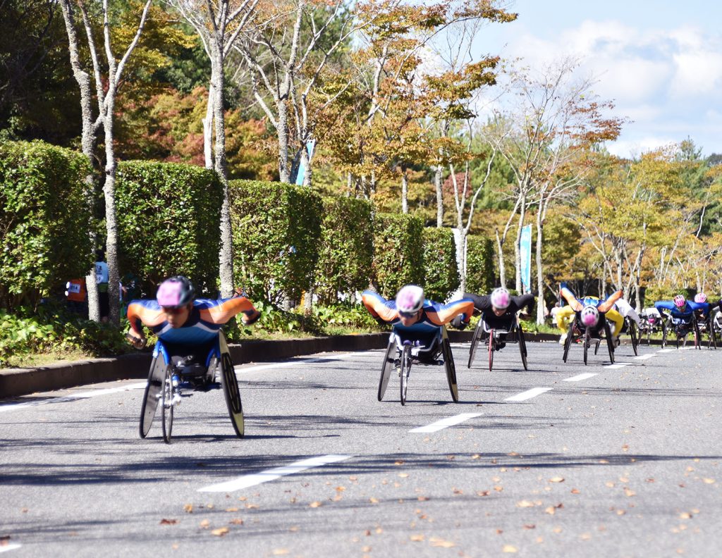 「ハーフマラソン」車いすの部は、スタート直後が下り坂ということもあって、凄い迫力です!