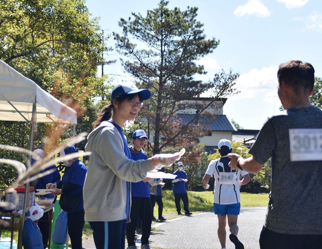 必死で走る選手に手渡しするのは、なかなか難しんですよ…