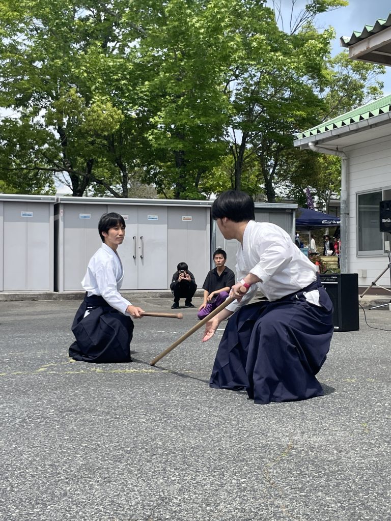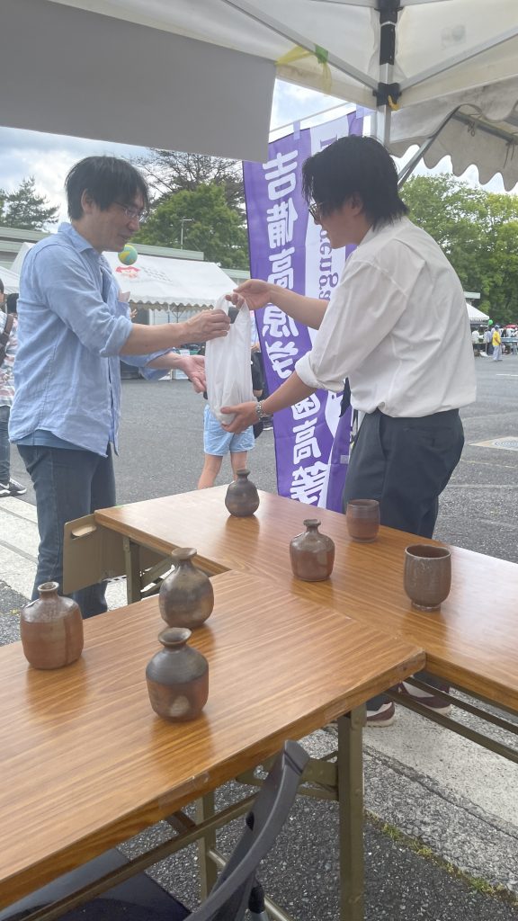 出店では、美術部が似顔絵コーナー、陶芸コースが作品の販売、ステージでは音楽部、古武道部が発表。