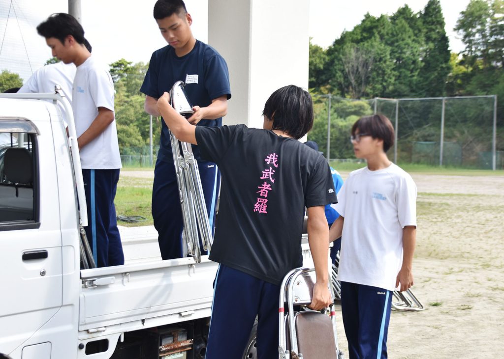体育館から大量の椅子を「我武者羅」に運んでくれています