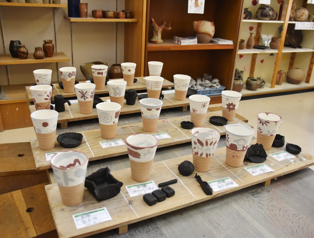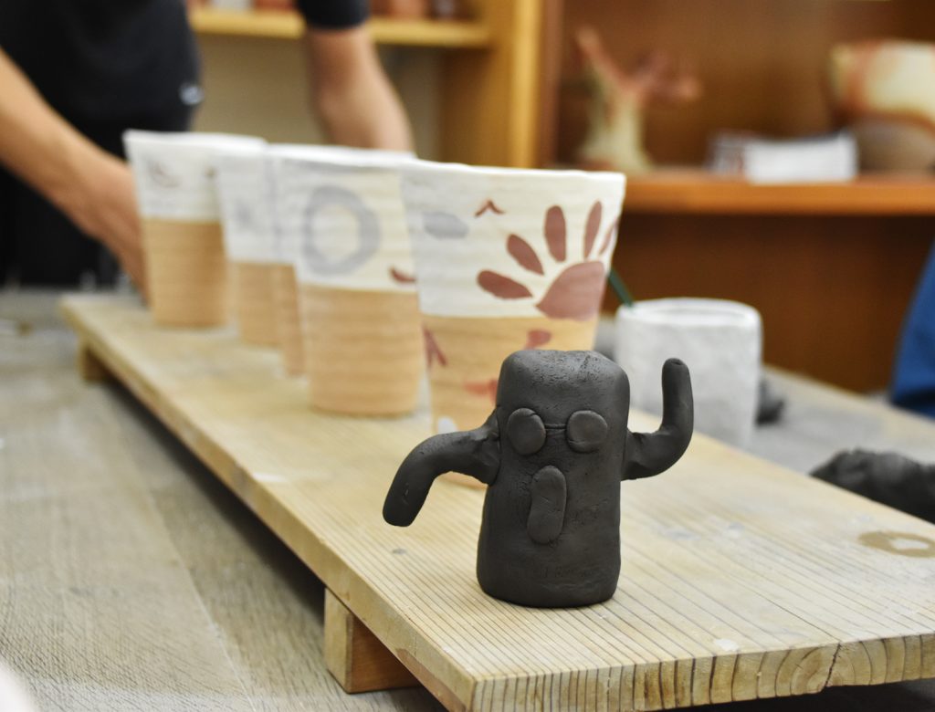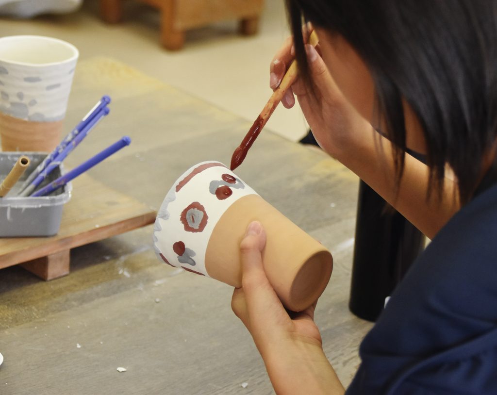 【陶芸】コップの絵付けと備前焼の粘土を使った自由制作
