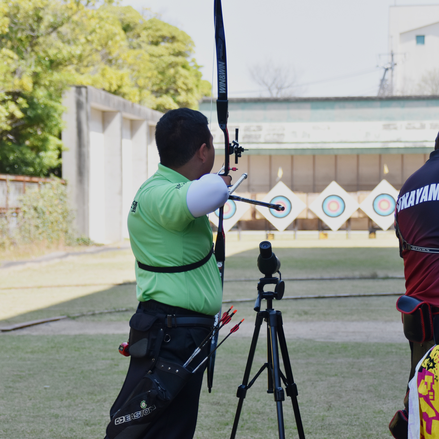 アーチェリー部3年生の竹原 英翔さんが、岡山県アーチェリー協会主催の「さくらアーチェリー大会」に出場しました。大会には高校生、大学生、社会人など様々なカテゴリーの方が参加し一緒に競技をしました。また、パリ五輪出場予定の中西 絢哉選手も出場されていました!