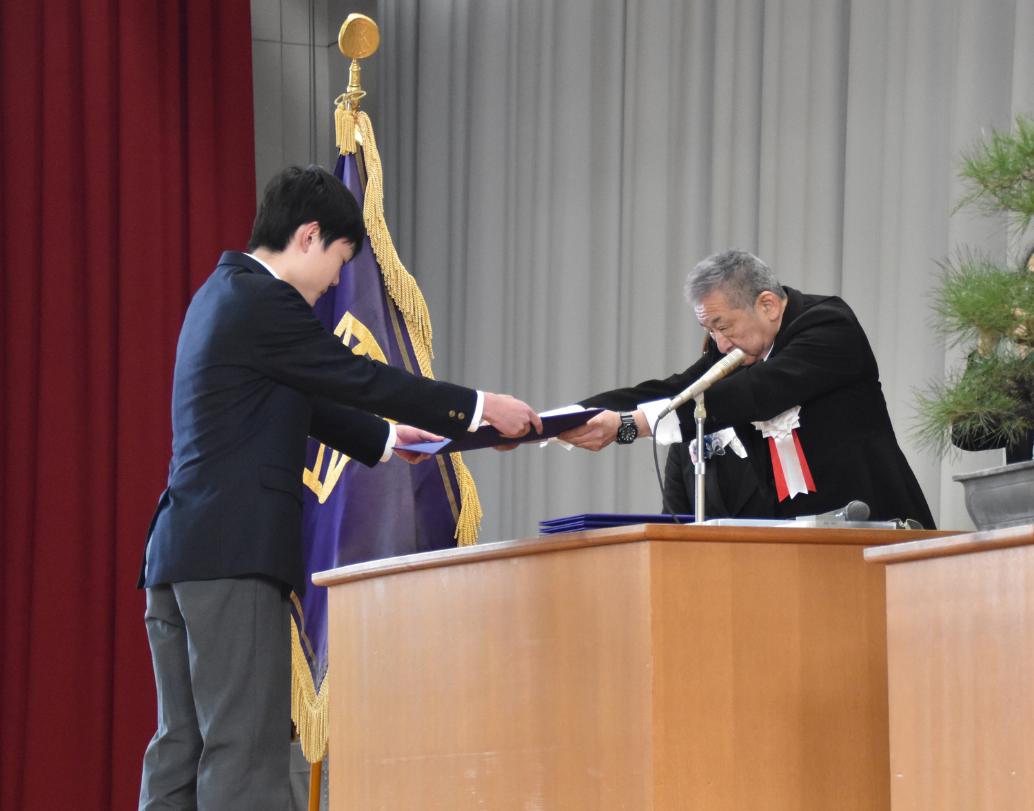【卒業記念品贈呈】卒業生代表の柴田 正伸さん