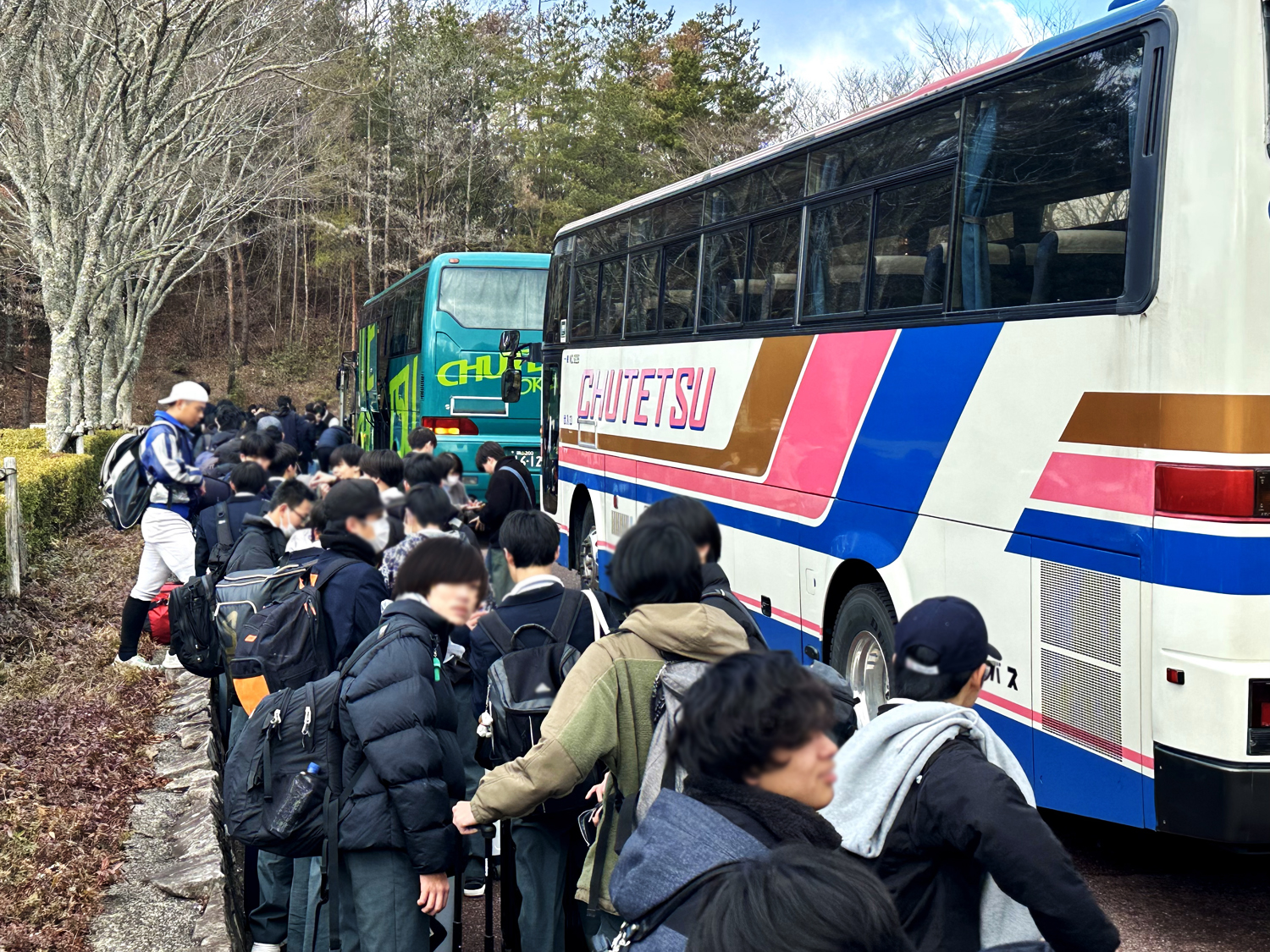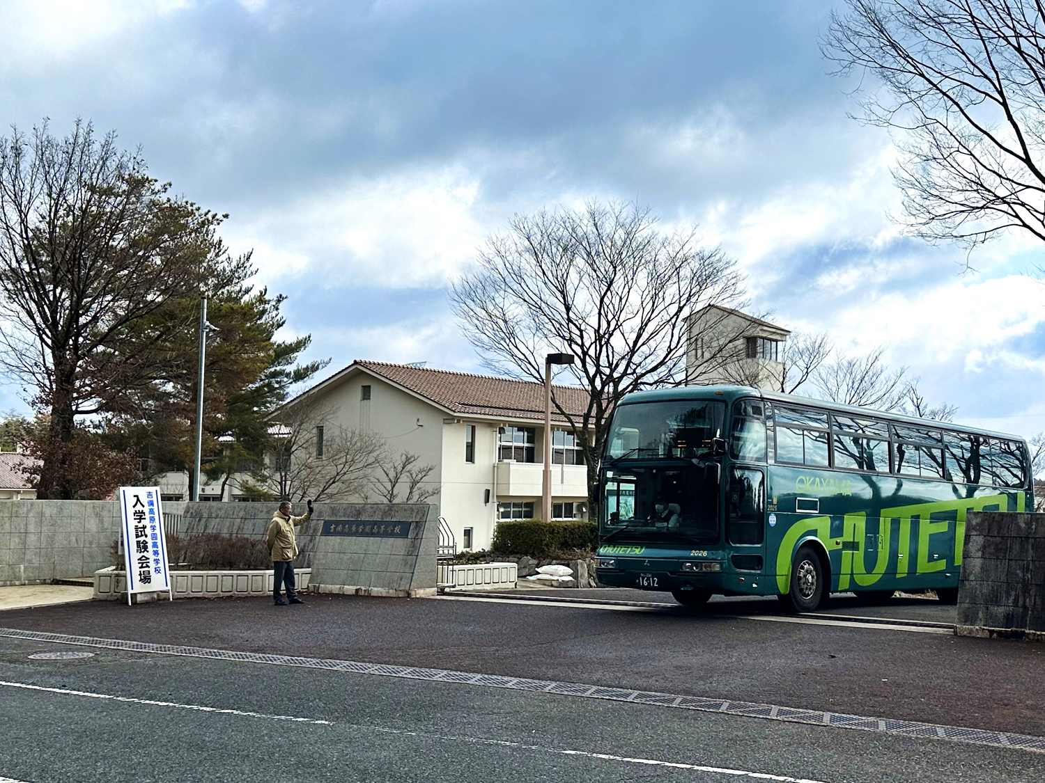 本日は令和5年度最後の帰省日ですが、昨日からの「なごり雪」で屋根の上や校内の植栽もきれいな雪景色となりました。岡山駅への臨時バスが出発する時には晴天に恵まれ、生徒も晴れ晴れとした表情でした。明日からは在宅学習期間となり、その後年度末休業(春休み)となります。生徒の皆さん一年間お疲れ様でした。4月からは新しい学年、新しいクラス、新しい寮室での生活がはじまります。帰省期間中にしっかりとリフレッシュして来年度も頑張りましょう!