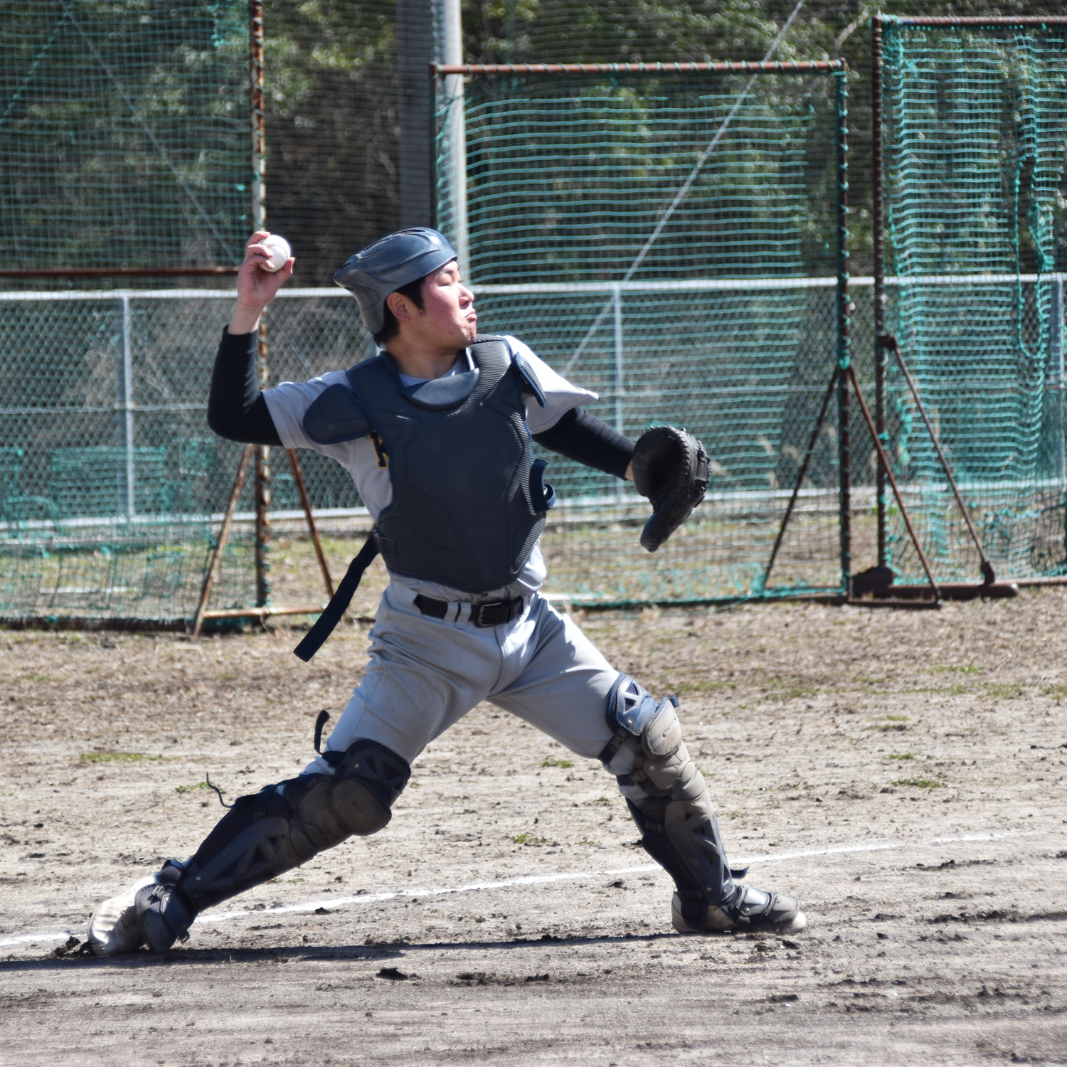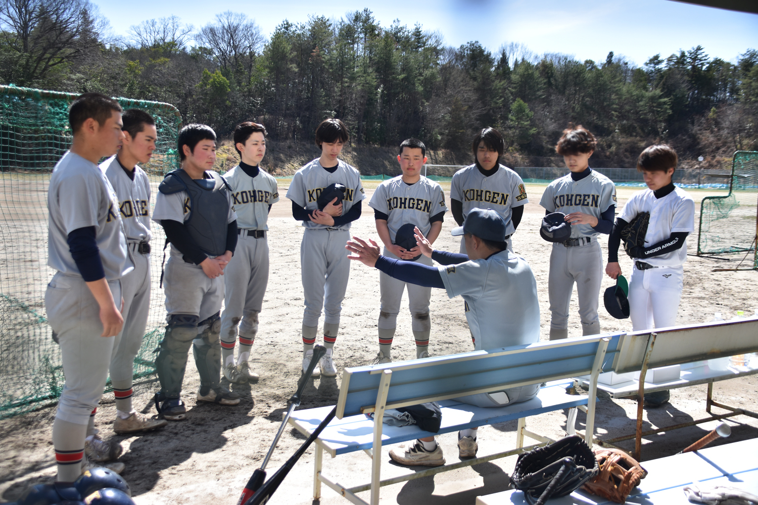 帰省期間中ということもあり、校内は静まり返っていますが、春合宿中の野球部は熱心に活動しています。今日は岡山高校さんに来ていただき、練習試合を行いました。まだまだ、攻守ともに課題も多いのですが、実戦を通して自分たちの実力を確認し、より高い目標に向かって頑張っている様子でした!