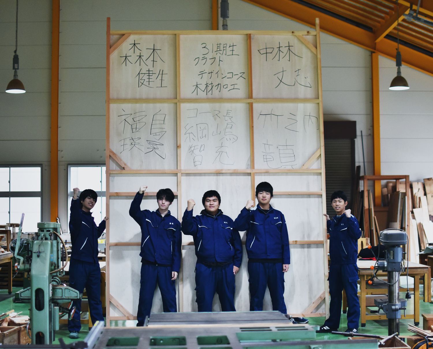クラフトデザインコースは自分達の個人制作はもちろんですが、世のため、人のため、学校のために様々なものをつくってくれています!今日は体育祭で使用する「アーチ看板」(4台)が爆誕しましたよ!今年度の体育祭で使用していたものは十数年間使って傷んでいた部分も多かったため、新しく作ってくれました。横2,700mmで縦は4,000mmという大きな看板の裏には、制作チームの名前が!来年度の体育祭が楽しみですね!