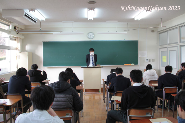 教頭先生から冬休み前にあたってのお話,教務課・進路指導課・生徒指導課からのお話もありました。