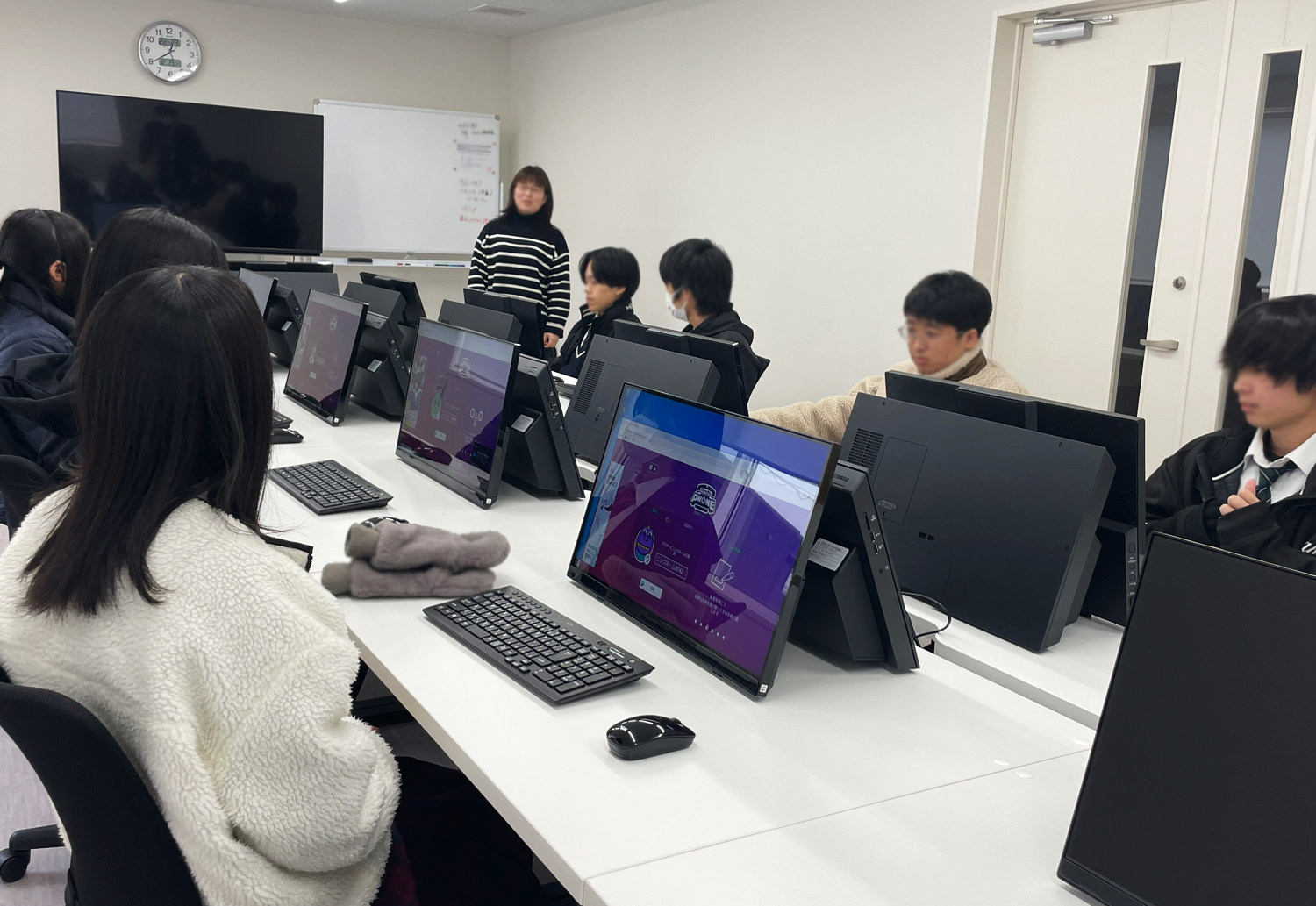 マンガ・アニメーションコースの2年生と3年生が12月15日(金)、19日(火)の2日間、中国デザイン専門学校様を訪問し、校外研修を実施しました。学校でも一人一台のパソコンで実習を行っていますが、よりハイスペックなマシンであること加えて「液晶タブレット」も使用させていただき、生徒にとっても良い経験となりました。