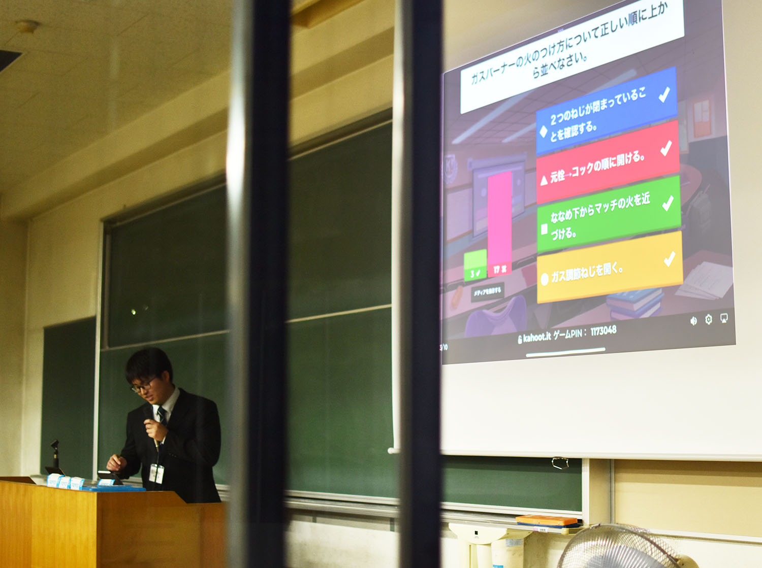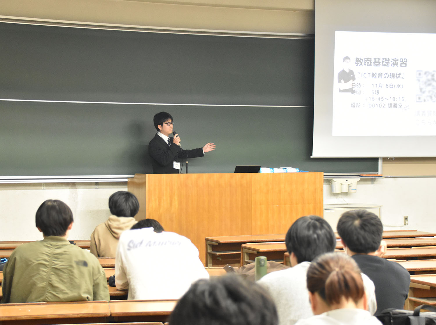 本校の谷田 理(たにだ まろ)先生が岡山理科大学からの依頼を受けて、理学部の2年生を対象に特別講義を行いました。講義のテーマは「ICT教育の現状」で、現場での実践例や具体的な教育支援ツールの使い方などを中心に熱のこもった講義となりました。特に学生の皆さんにも参加してもらいながらの「Kahoot!」を活用したワークショップはとても盛り上がりました。受講した学生の皆さんは学校の先生を目指している方々ということもあり、楽しみながら積極的に授業に取り組まれていたのが印象的でした。