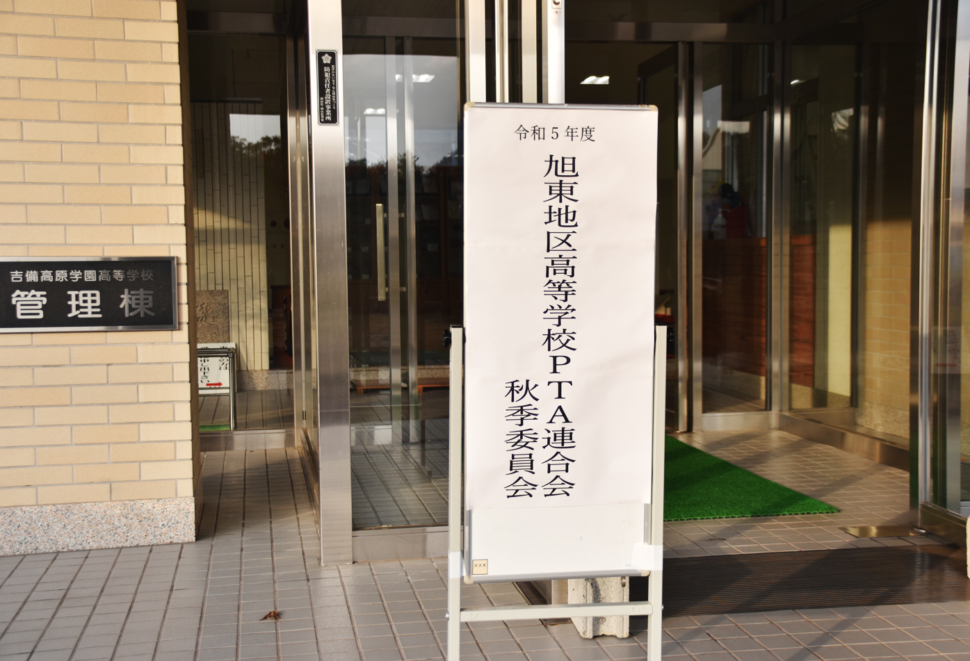 本日、令和5年度旭東地区高等学校PTA連合会秋季委員会が本校を会場に開催されました。本校を含めて旭東地区の高等学校が10校が集まり、各校のPTA活動について報告がありました。また、村本和孝先生(私塾フリースクール代表)をお招きしての講演会では、不登校支援についてご自身の経験を踏まえてお話ししていただきました。