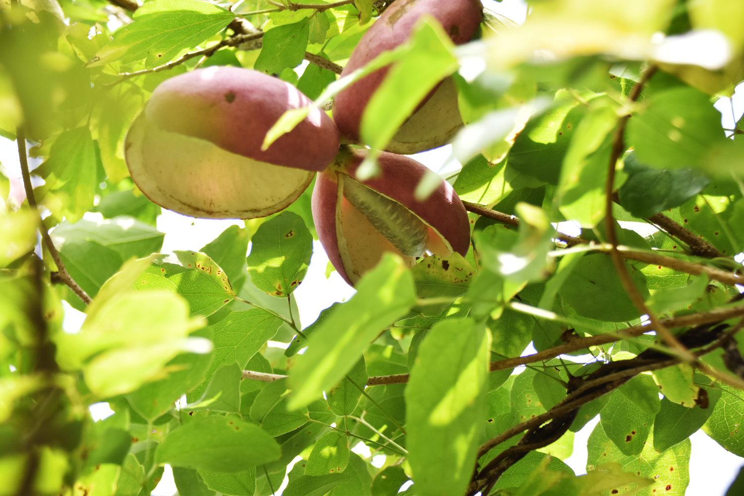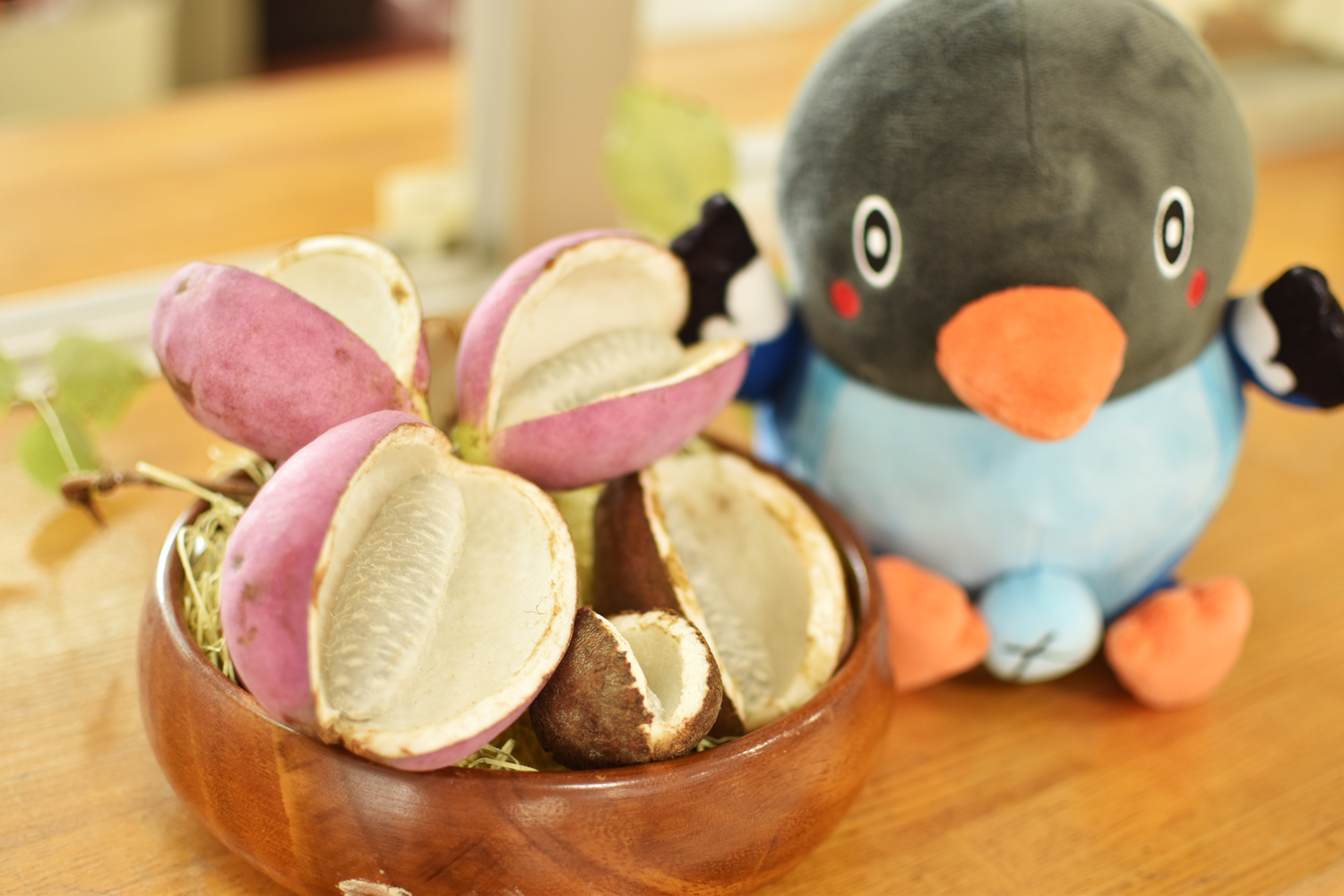 現在の気温は21℃(校舎内の日陰)です。過ごしやすいというか長そでを着ていないと肌寒く感じます。周辺の山々も色づき始め、秋の気配が深まっています。学校の周辺には「アケビ」が群生している場所があるのですが、たくさん実がついていました!ちなみに、群生場所は秘密です!