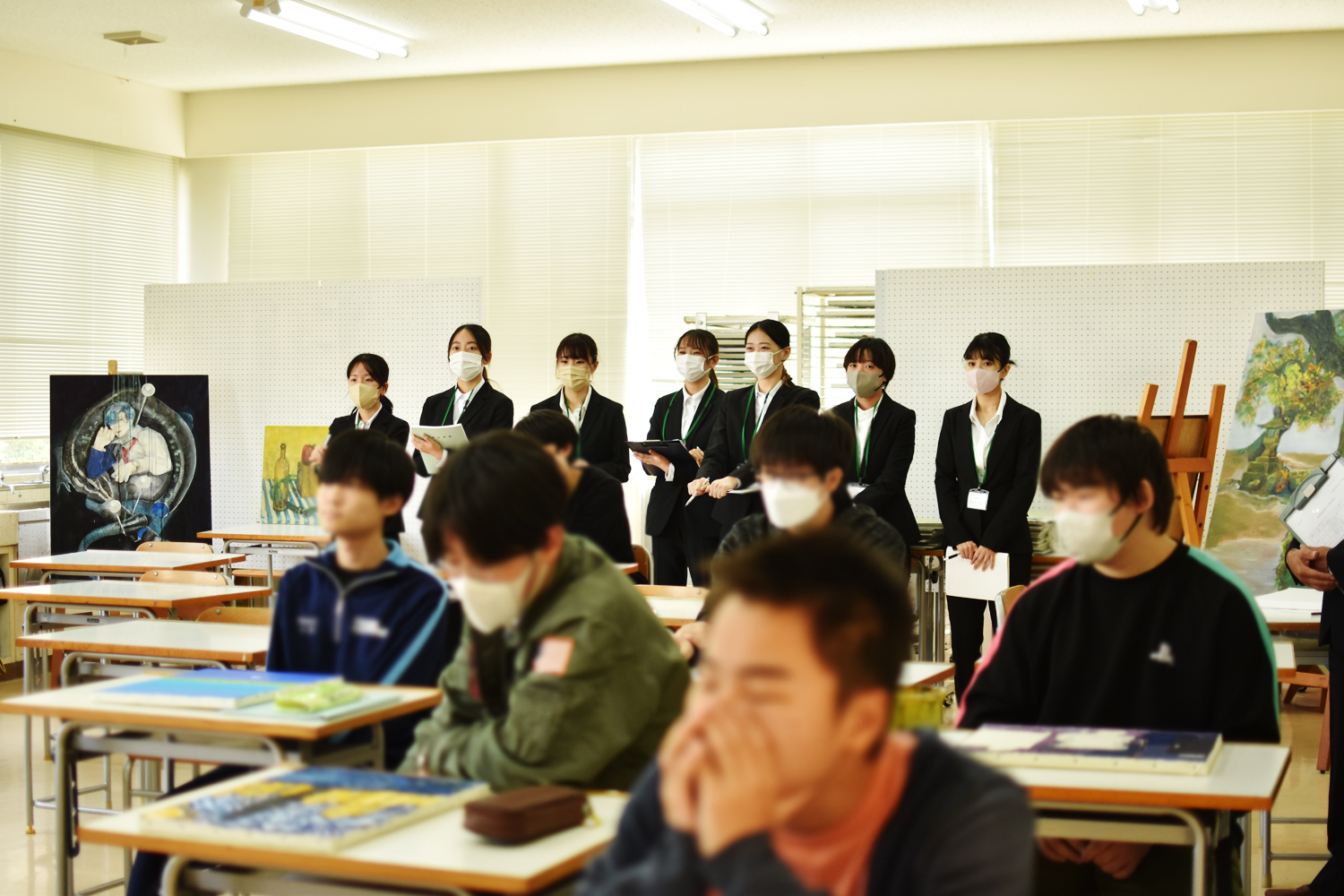 倉敷芸術科学大学の教育実習生7名が、オリエンテーションのために来校されました。今日は学校の概要説明を聞いたり、美術やものづくりの実習(陶芸・クラフト)を見学したりした後、教科担当教員との打ち合わせを行い、教育実習に向けて準備をしました。本番の実習は11月19日(日)からスタートしますので、しっかりと準備をしてください!