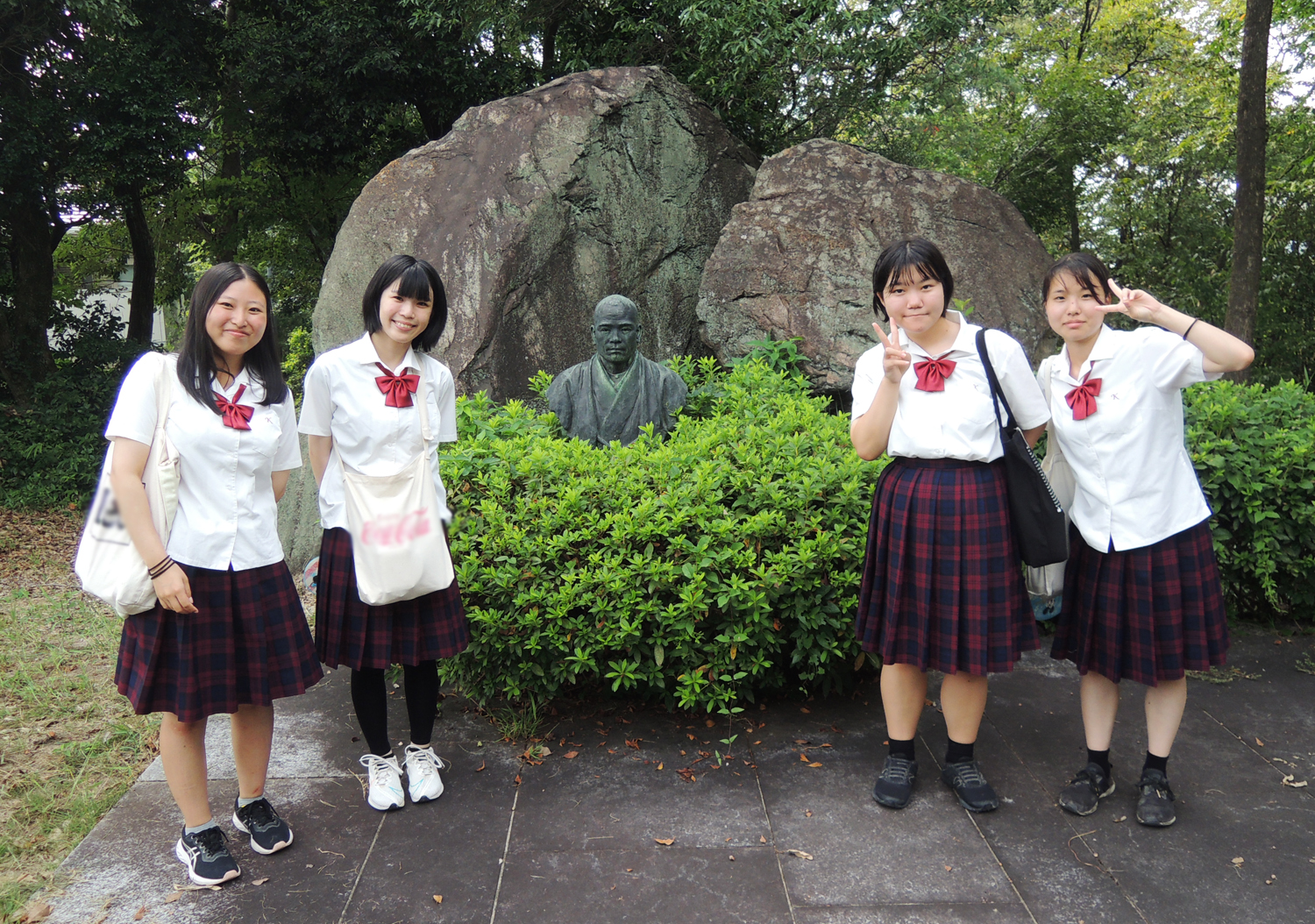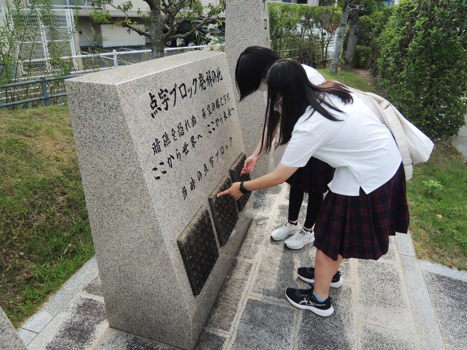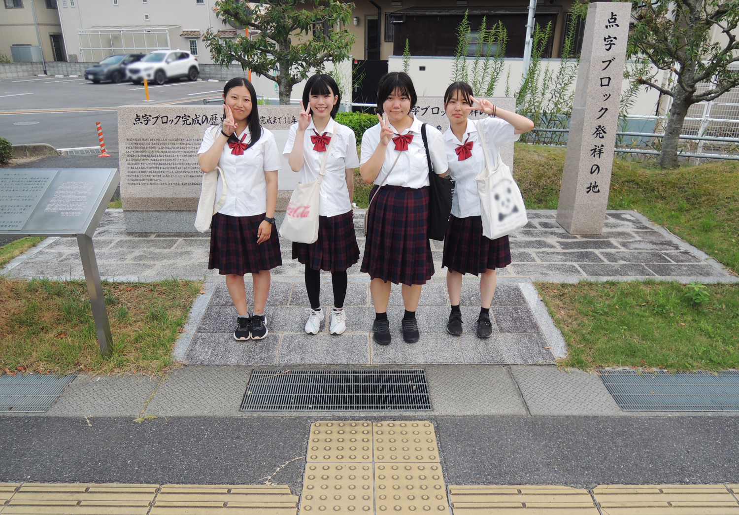 9月15日(金)福祉ボランティアコースの4名の生徒が「石井十次記念館」と「点字ブロック発祥の地」に行ってきました。