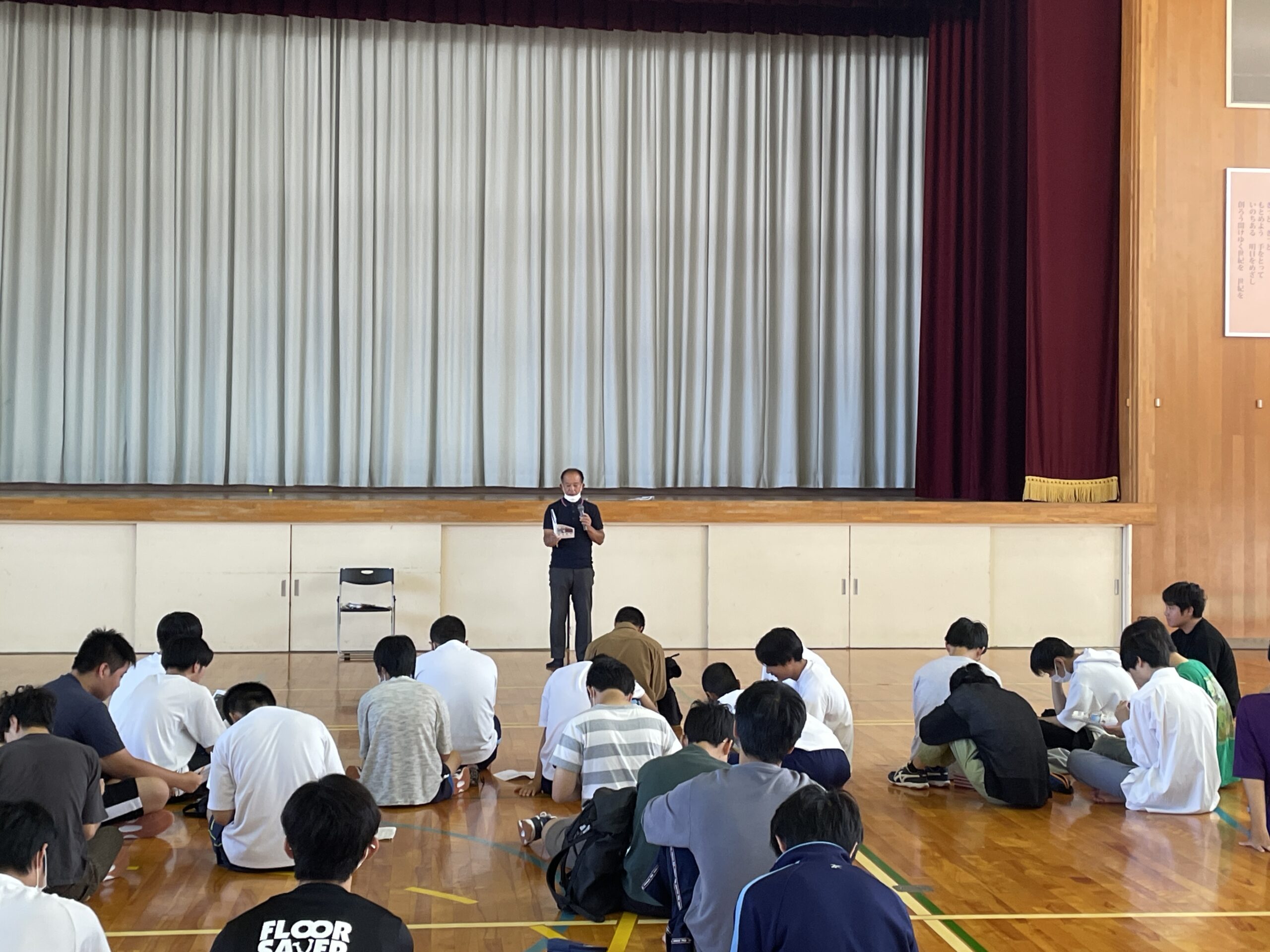 9月24日、研修旅行の直前の説明の様子です。真剣に生徒はしおりに目を通しています!