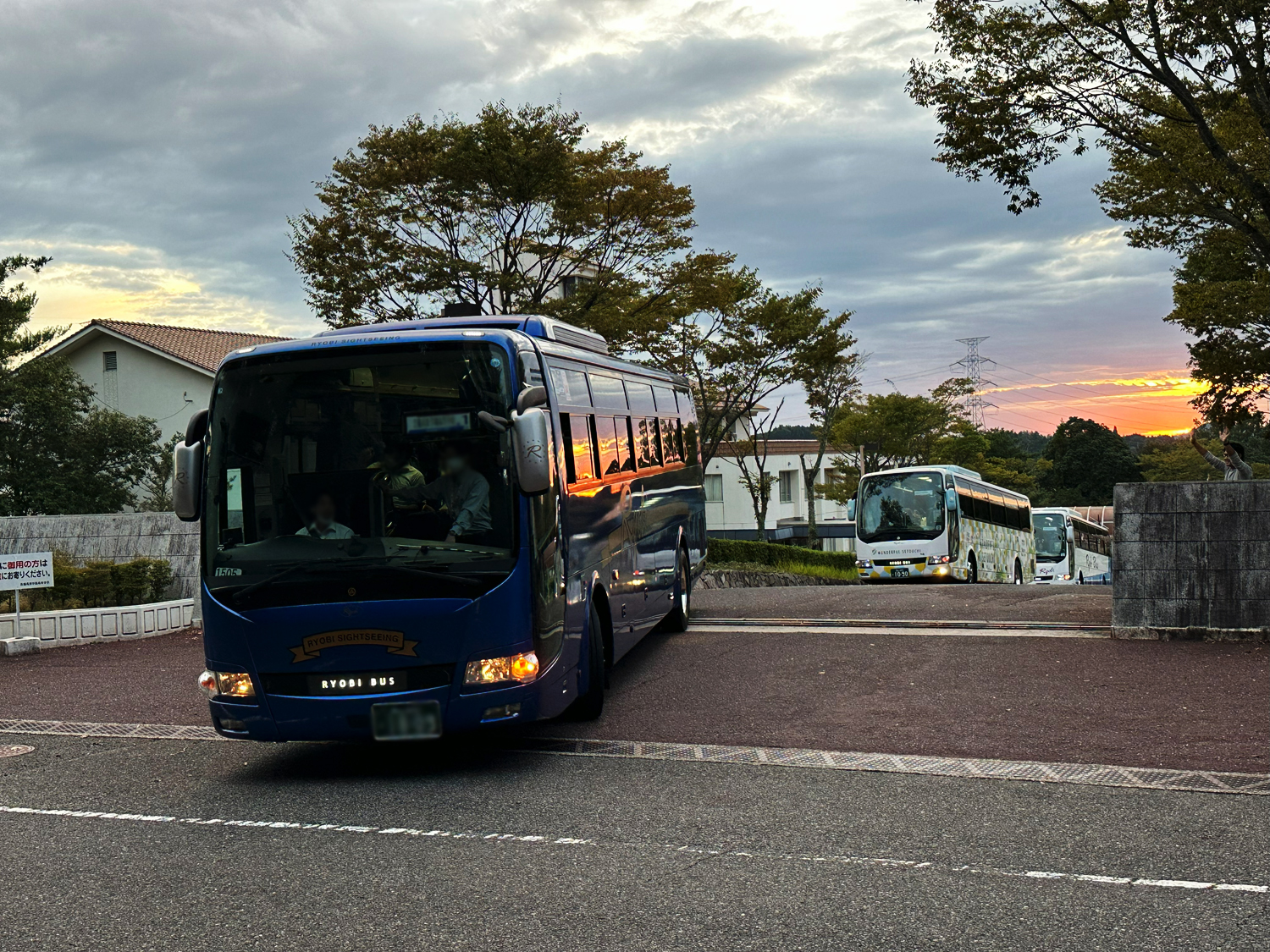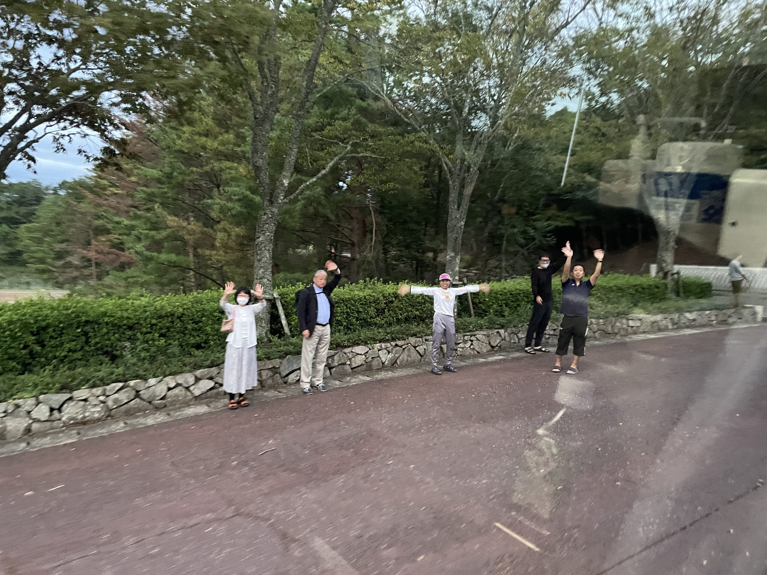 校長先生をはじめ他の学年の先生と朝焼けに見送られて出発です!