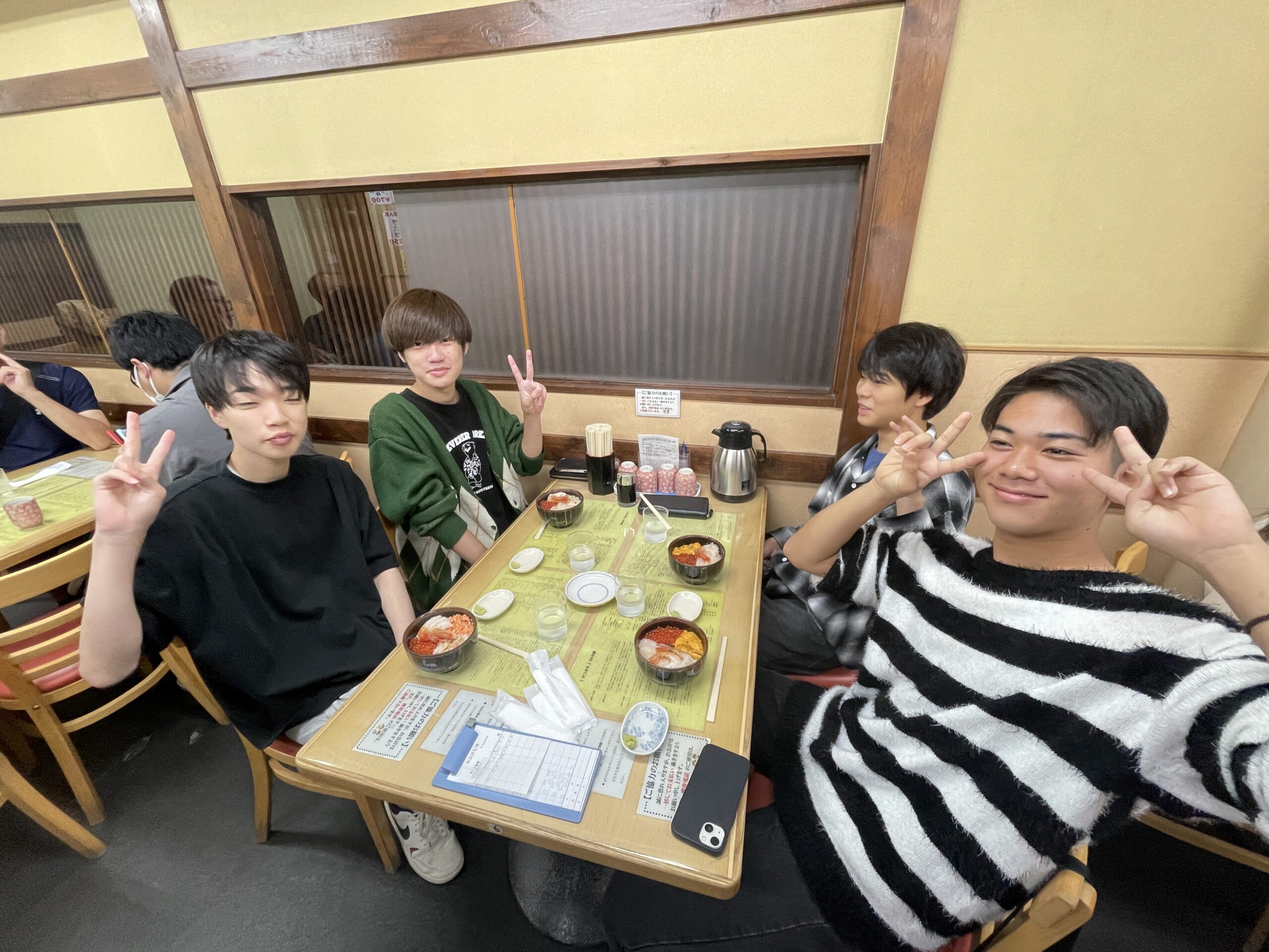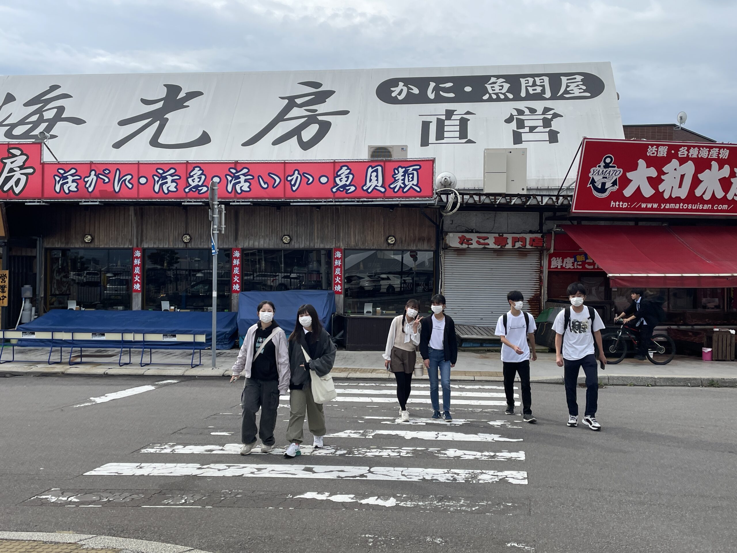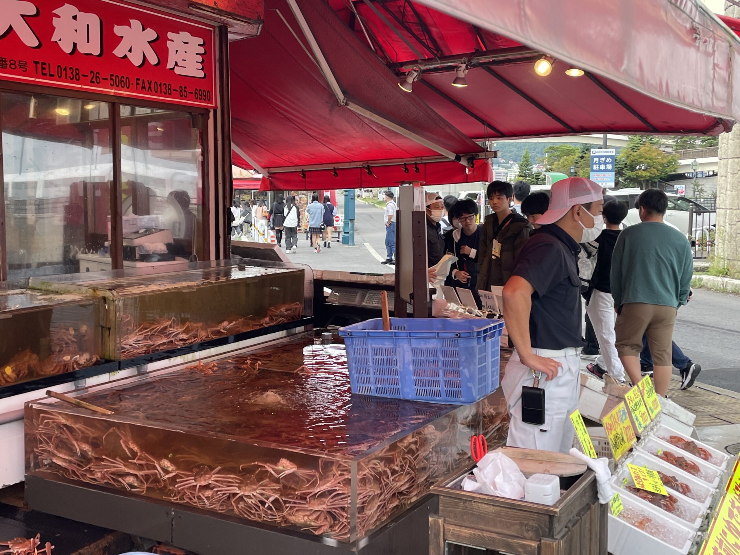 海鮮丼を食べている生徒がたくさんいました。お家に蟹を送っている生徒もおり、朝から充実の時間でした!