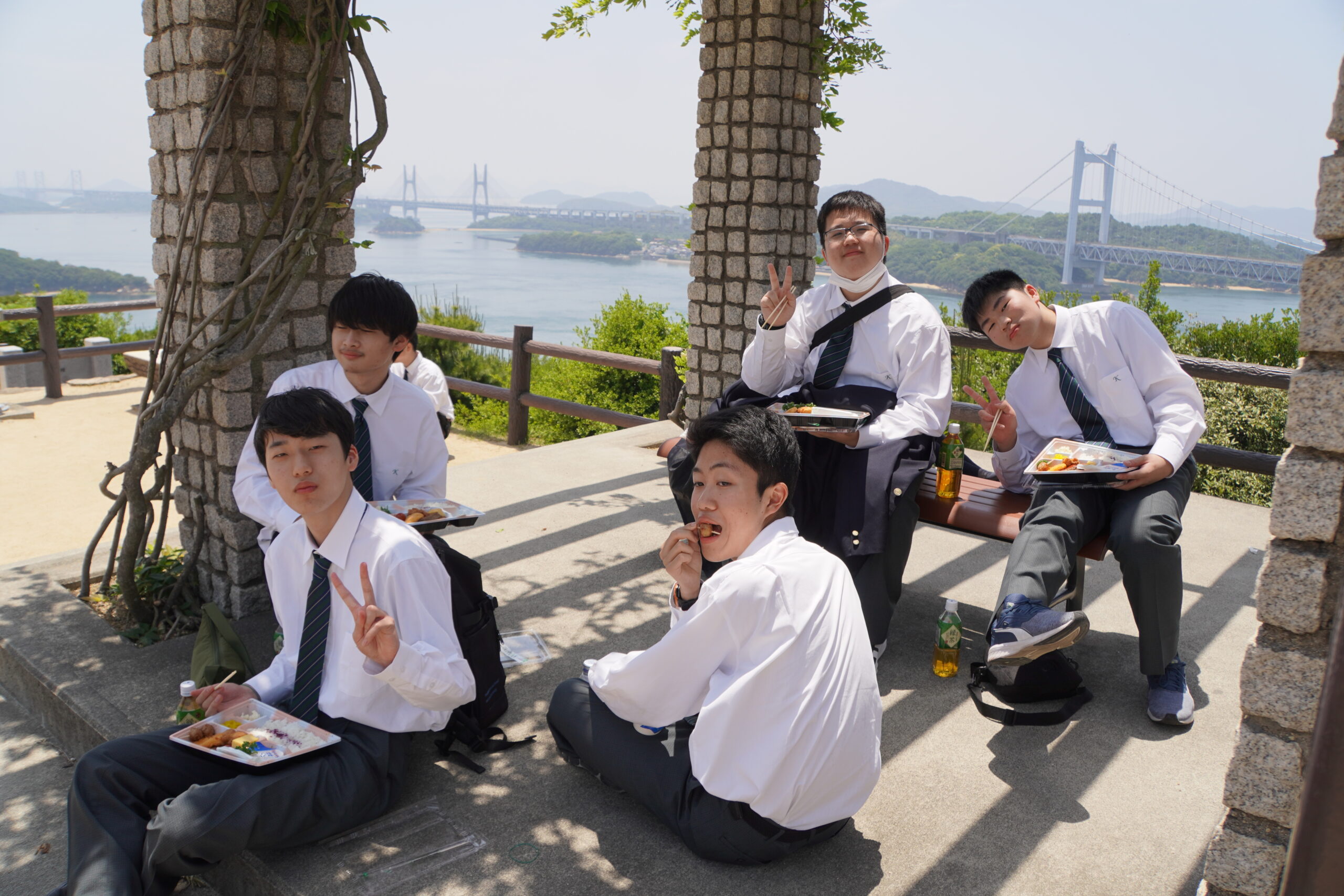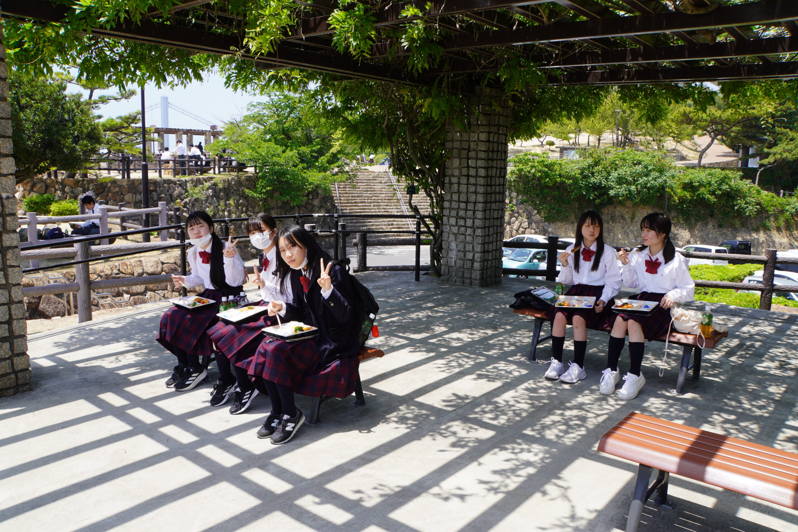 1年生はまず倉敷美観地区で白壁や柳並木の綺麗な景観を眺めながら、散策を楽しみました。その後は鷲羽山展望台で瀬戸大橋を眺めながらお弁当を食べました。まずは、「岡山県の名所を知る」ことからです。