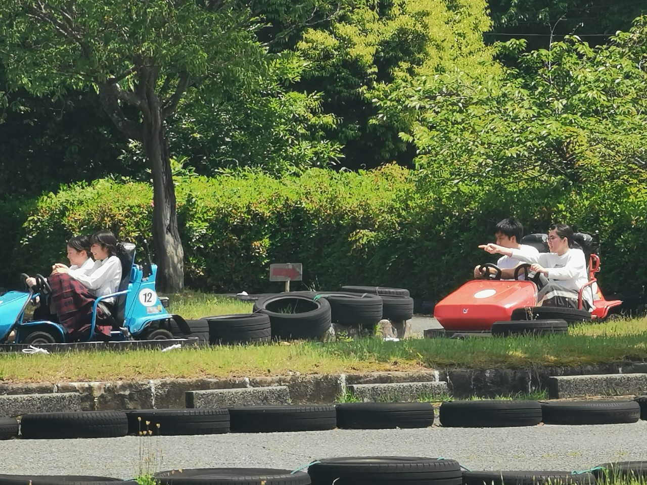 2年生は「おかやまファーマーズ・マーケットノースビレッジ」に行きました。体験学習で作ったアイスクリームを頬張り、お弁当を食べた後は、園内の散策。ヤギやウサギと触れ合ったり、ゴーカートに乗ったり、自然の中で思いっきり遊びました。