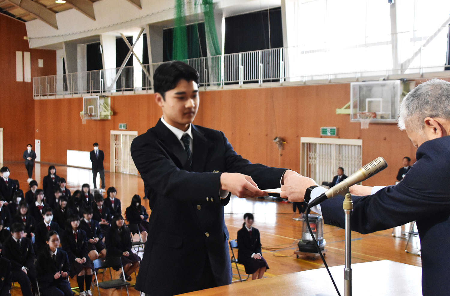 表彰式では一年間皆勤賞等 多くの生徒が紹介されました