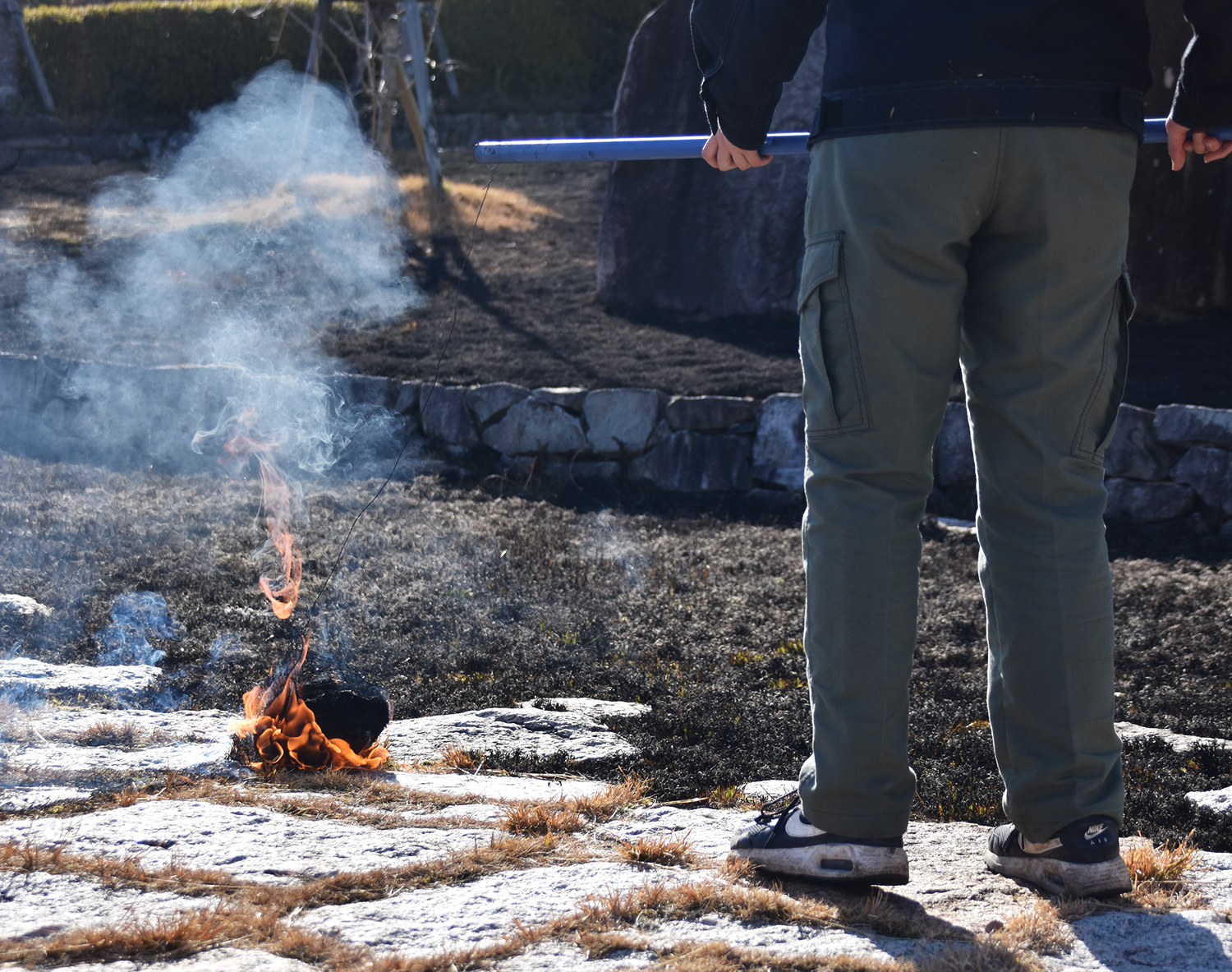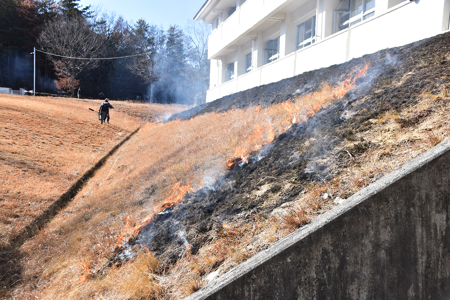 緑化システムコースの2年生による「芝焼き」が行われました。日中はとても穏やかな天気で、絶好の芝焼き日和となりました。芝焼きをすることによって病害虫の駆除や春の芽出しを均一にする効果があるそうです。新しい季節を感じさせてくれるイベントでした!