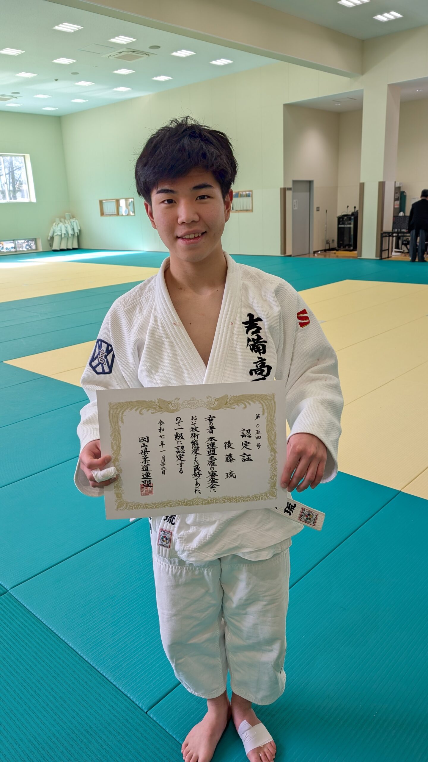 柔道部2年生後藤君、1級合格! 練習相手の髙津君、猪子君にも感謝です。