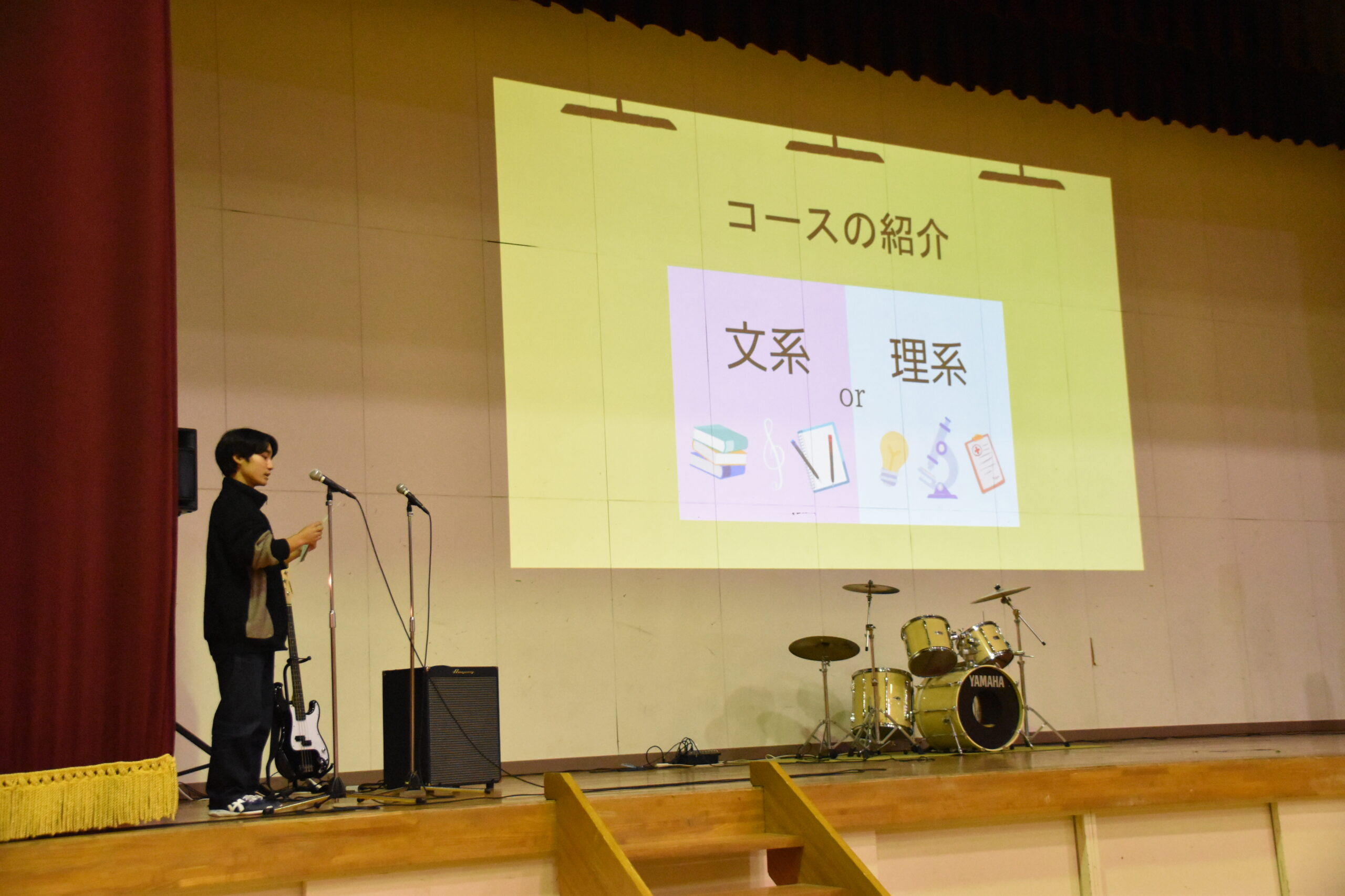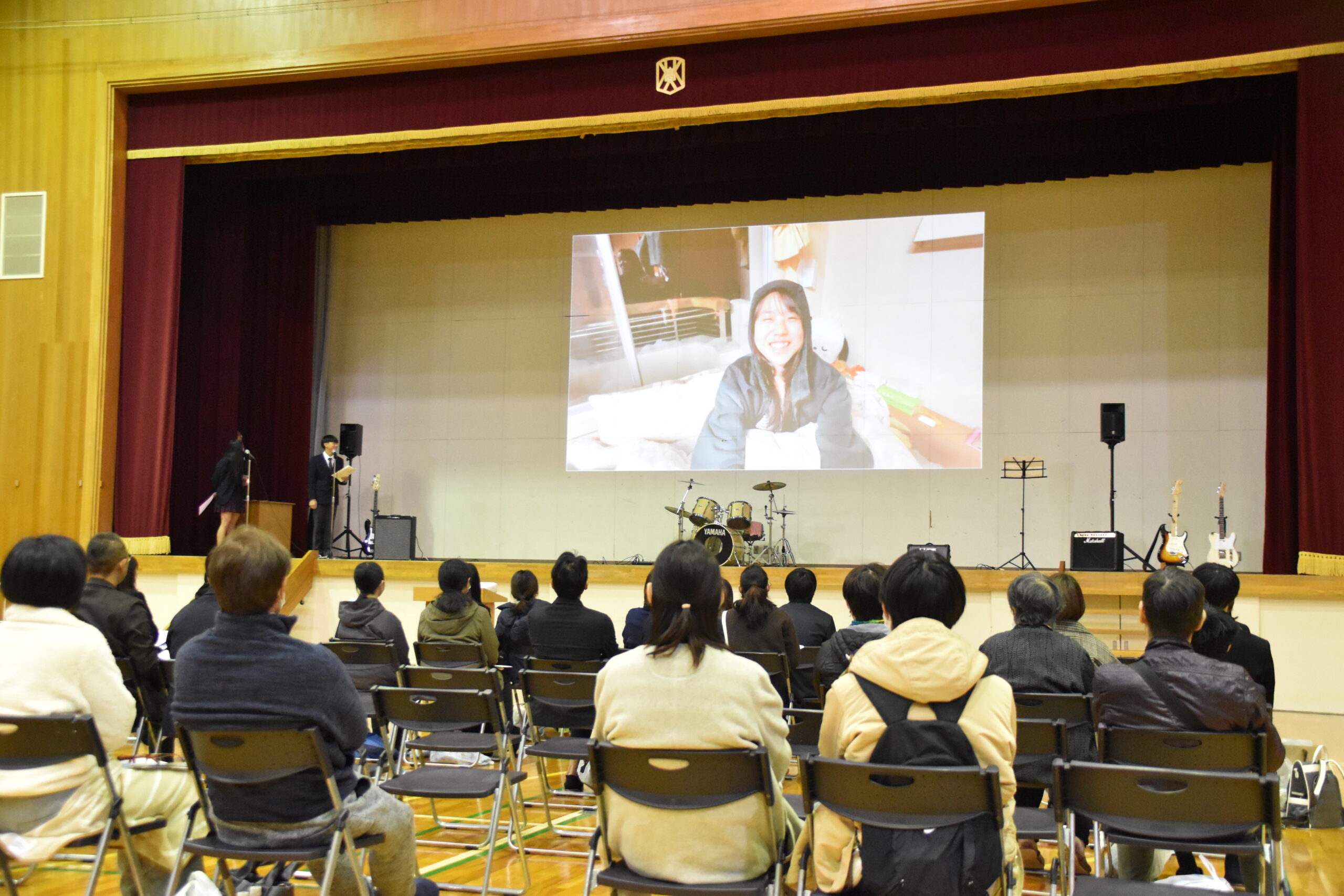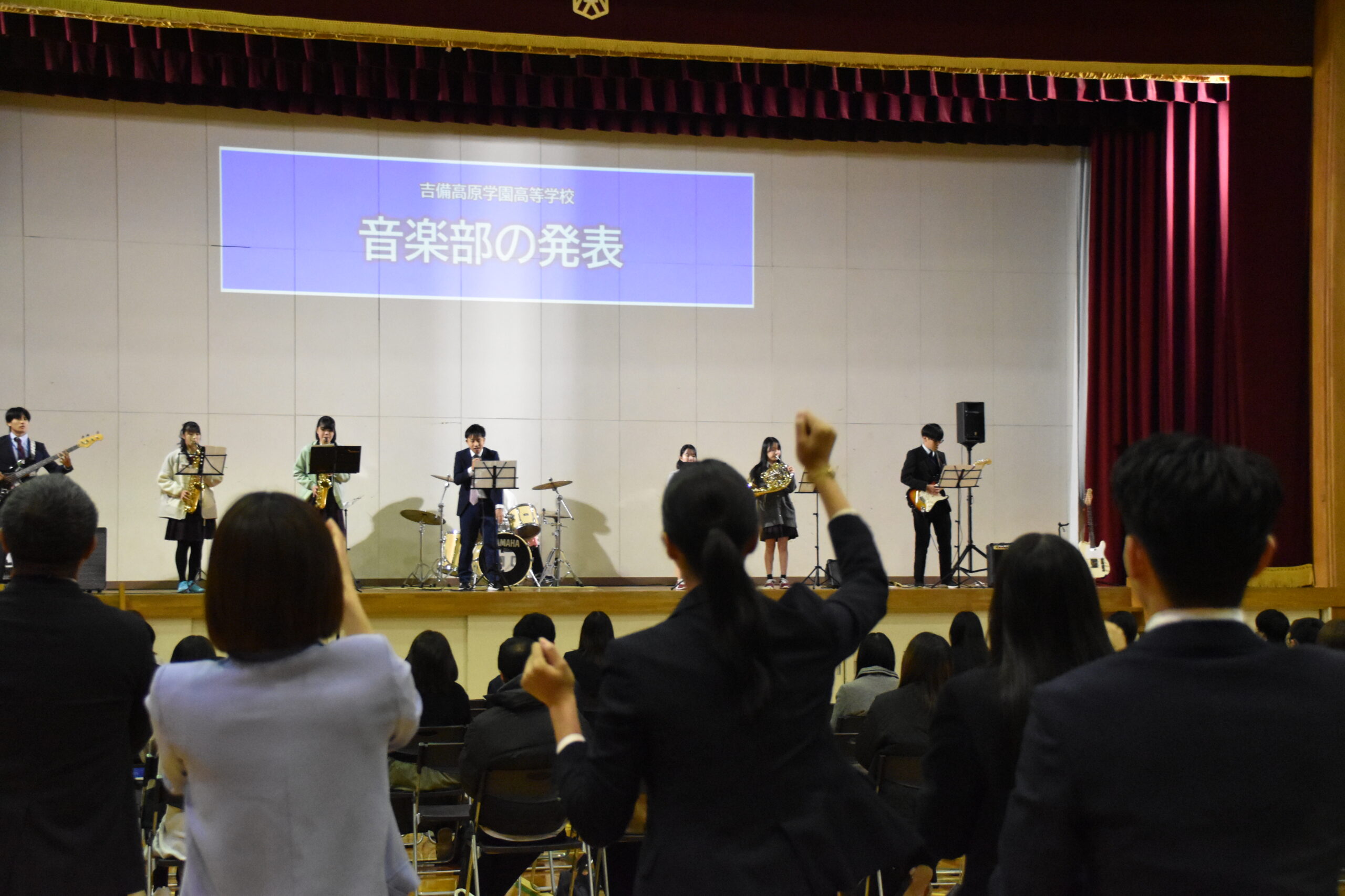 音楽部の演奏。ボーカル生徒の体調不良により急遽依頼された武安先生が英語の歌を熱唱。