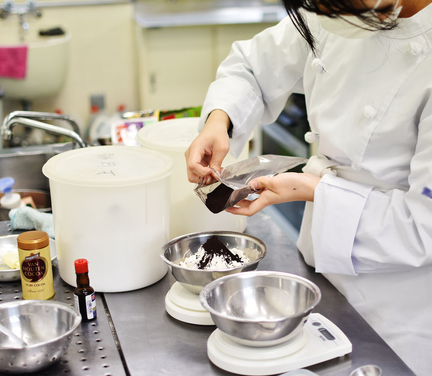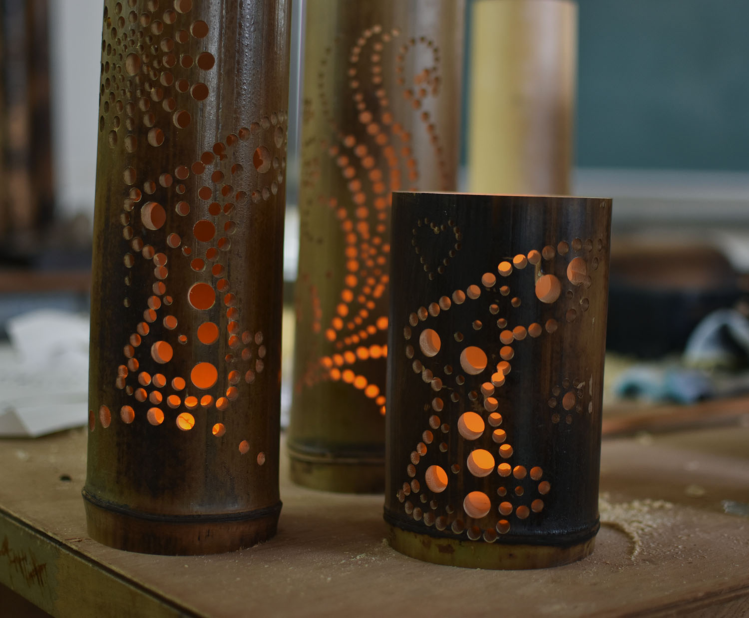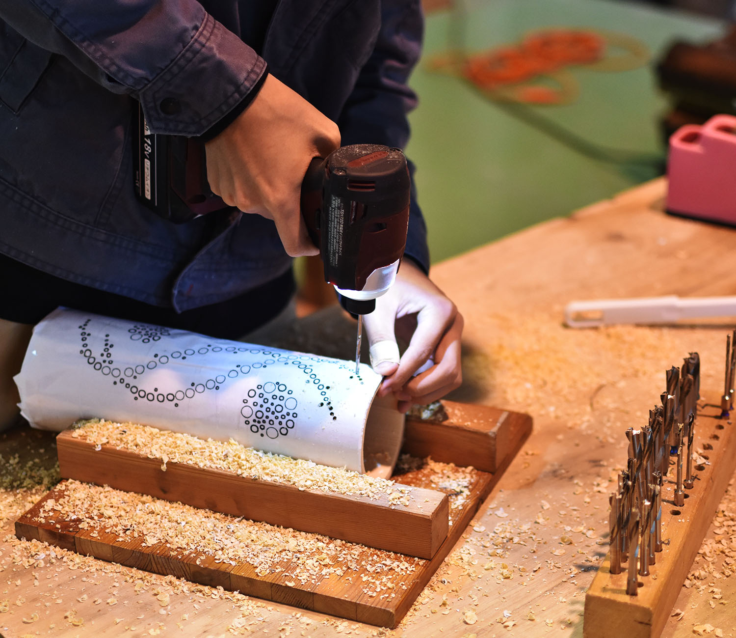 今日の5・6時間目は2・3年生がコースの時間だったため、昨日に続いて文化祭の準備が進んでいました。緑化システムコースでは「竹灯り」制作のための電動ドリルのウィーン!という音が鳴り響いていました。また、生活デザインコースでは「アイスボックスクッキー」制作のためにボールで生地を混ぜるシャカシャカという音が心地よく続いていました。