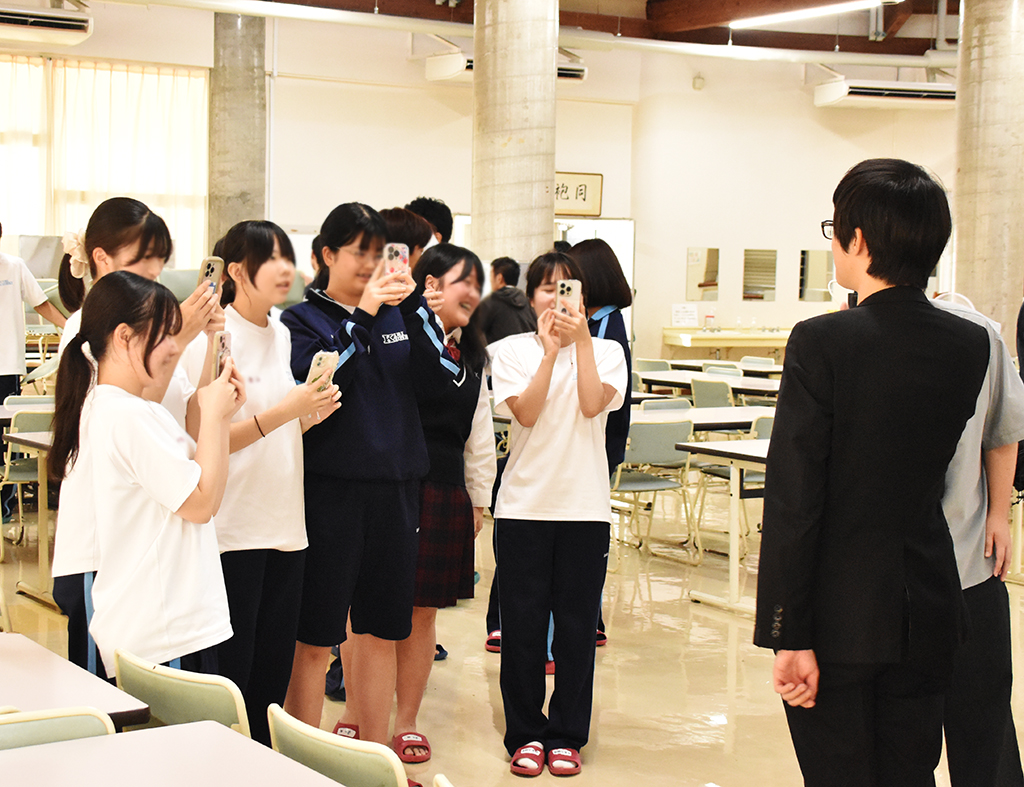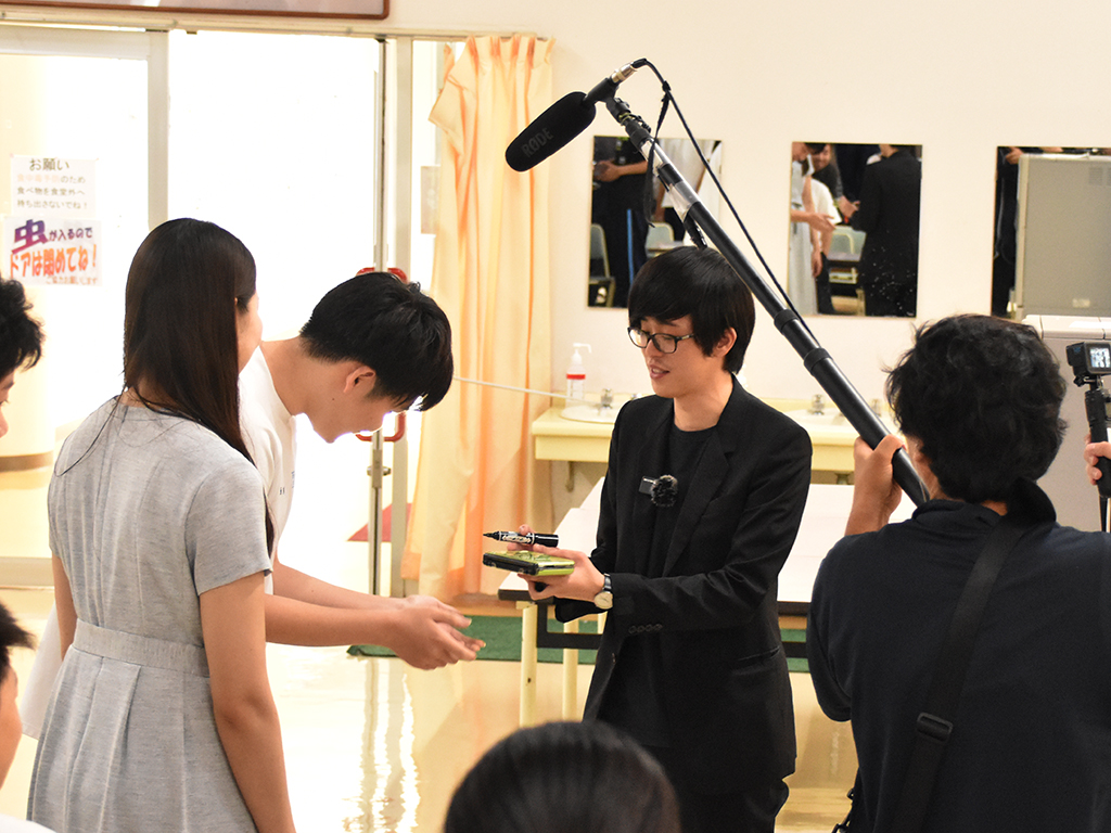 マジックショー終了後には、サイン会や撮影会も!インタビューを受けた生徒もいました。ステキな時間をご提供いただいた吉備ケーブルテレビ様とマジシャンSORA様に感謝です。