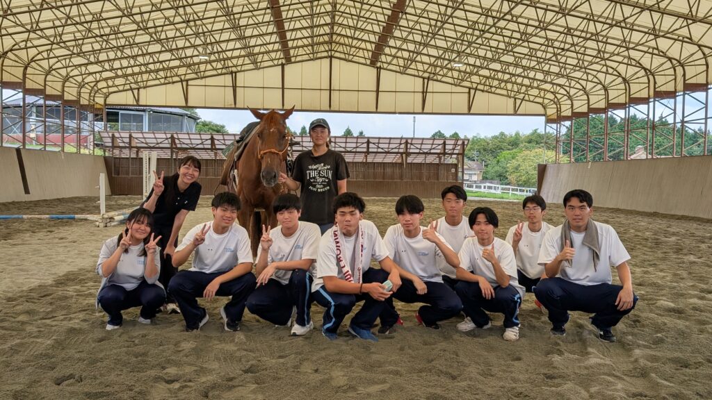 9月12日に健康スポーツコース3年生が吉備中央町内にある「岡山乗馬倶楽部」に乗馬体験とクラフト体験でお伺いさせていただきました。