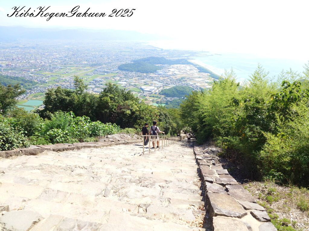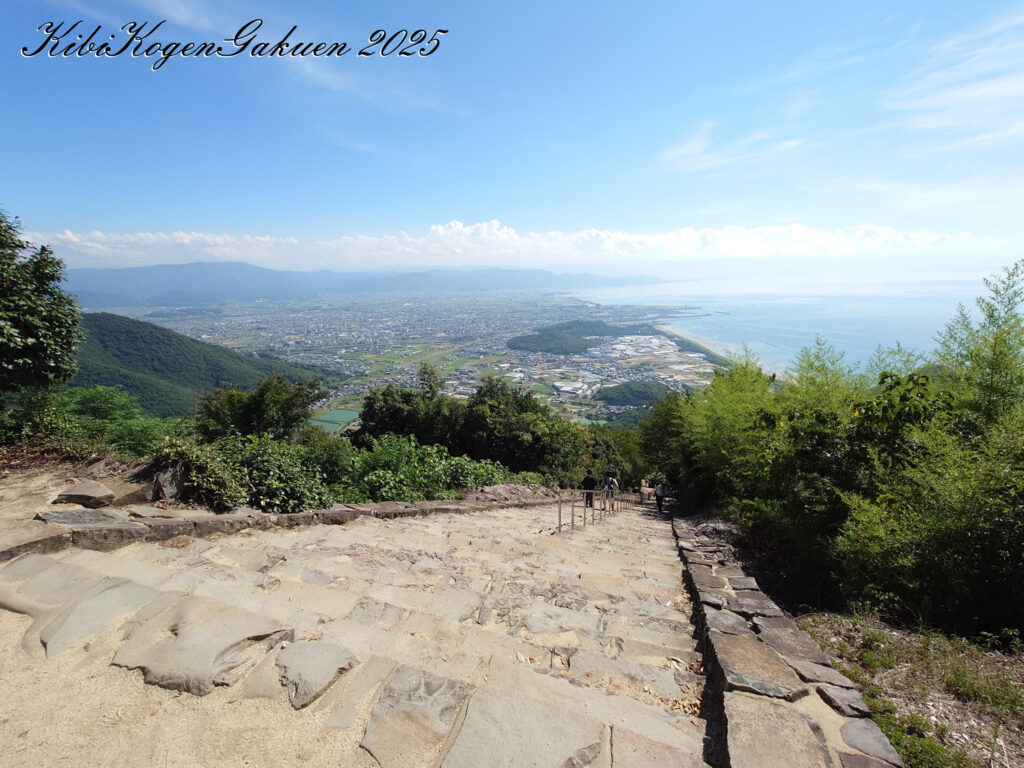 標高404メートルの稲積山の頂上に本宮があるため、「稲積神社(いなづみじんじゃ)」「稲積さん」ともよばれており、その本宮の鳥居越しに観音寺市街地と雄大な瀬戸内海が一望できます。