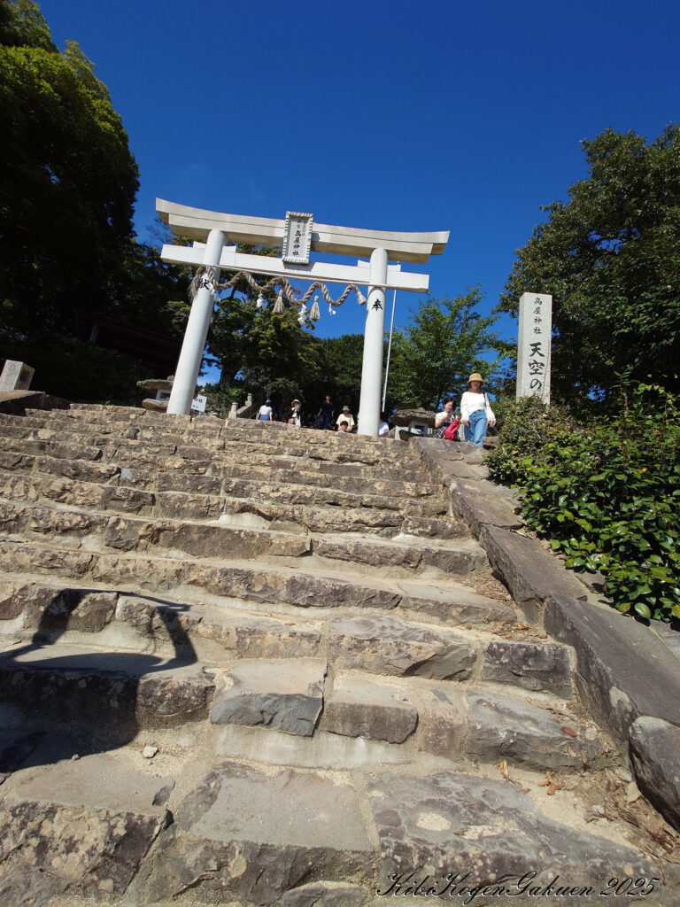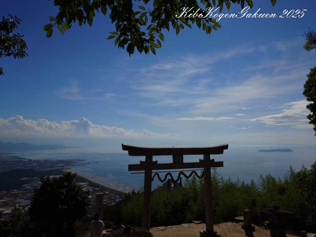 「天空の鳥居」高屋神社 本宮 鳥居の横にあるベンチから瀬戸内海を見下ろしています。