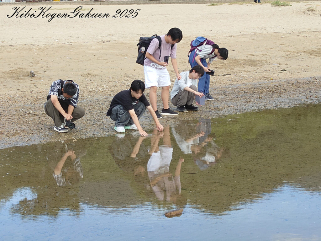 何人かは,裸足で波打ち際まで歩いて,浅瀬に入ってました。