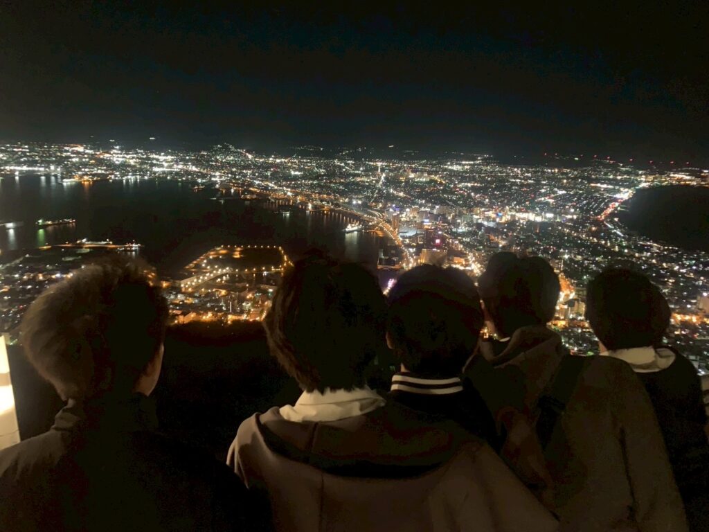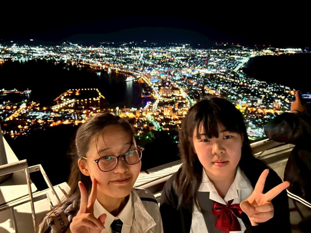 木々の間から時折のぞく街の光は、登るごとに表情を変え、生徒たちからは「わぁ!」と感嘆の声が上がりました。