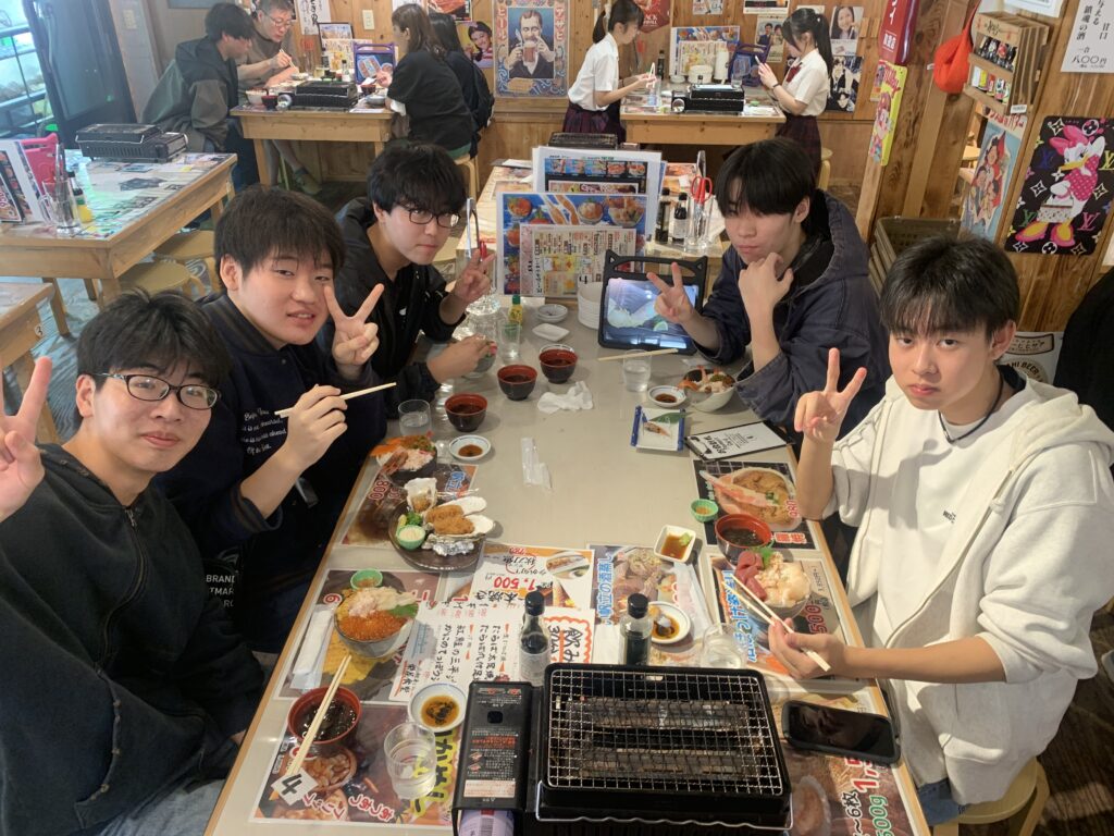 今日の朝食は函館朝市で自由食。海鮮丼や刺身定食、自分で釣ったイカ🦑を食べたり。