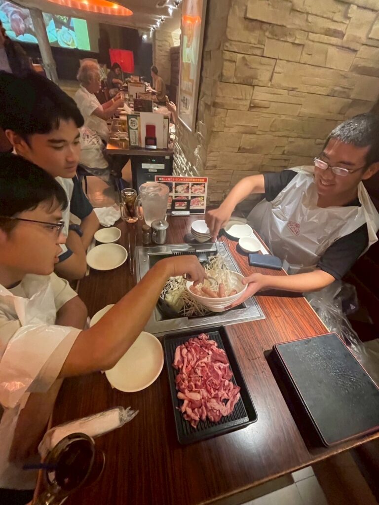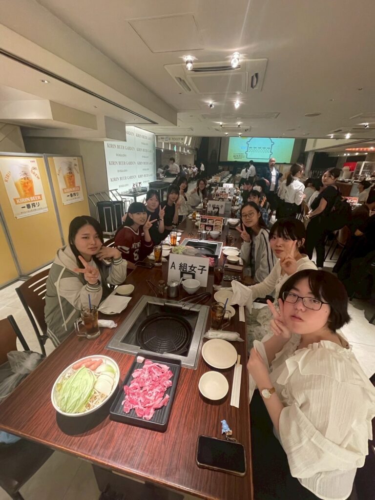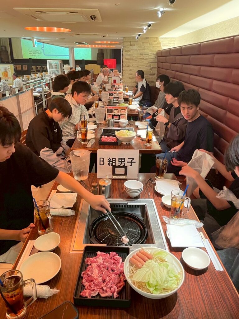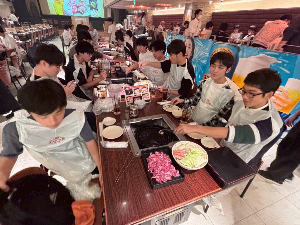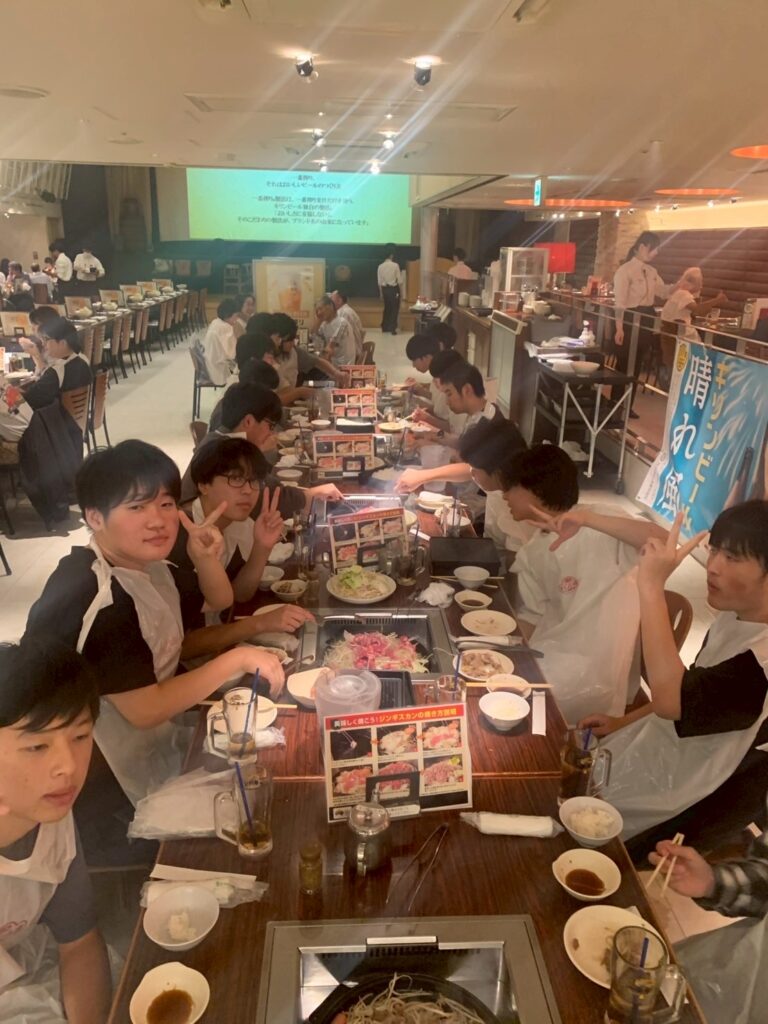 最後の夕食は北海道名物ジンギスカンのバイキング。烏龍茶で乾杯し、美味しくいただきました。