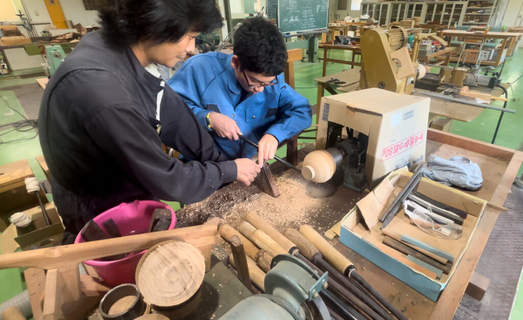 令和7年10月9日(木)、クラフトデザインコース2年生を対象に、伝統工芸士・木地師の濱田幸介先生をお招きして木工ろくろ実習を行いました。