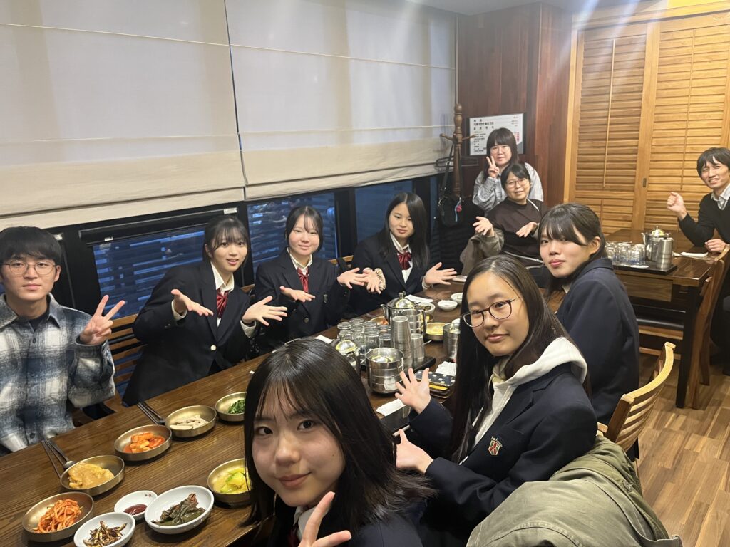 全南女子の先生に迎えていただき、そこからはバスで移動。夕方、目的地である光州広域市に入りました。晩御飯は韓定食のお店へ。本場の韓国料理に舌鼓を打ちました。食事を済ませ、18時半ごろ今夜のホテルにチェックイン。一日移動してみんなクタクタです…。今夜はゆっくり休んで、明日は協定校を訪れます!