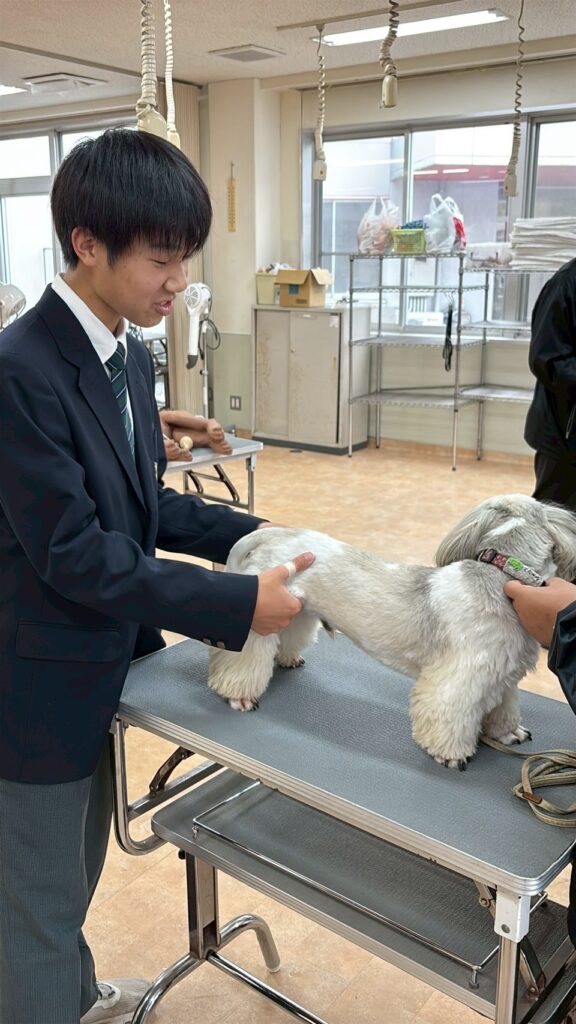 飼育トレーニングの体験では、トリミングの技法を教えていただきました。プロの現場で行われているケアの一部を実際に体験することで、「動物が好き」という気持ちだけでなく、丁寧な手さばきや観察力が求められることを学びました。