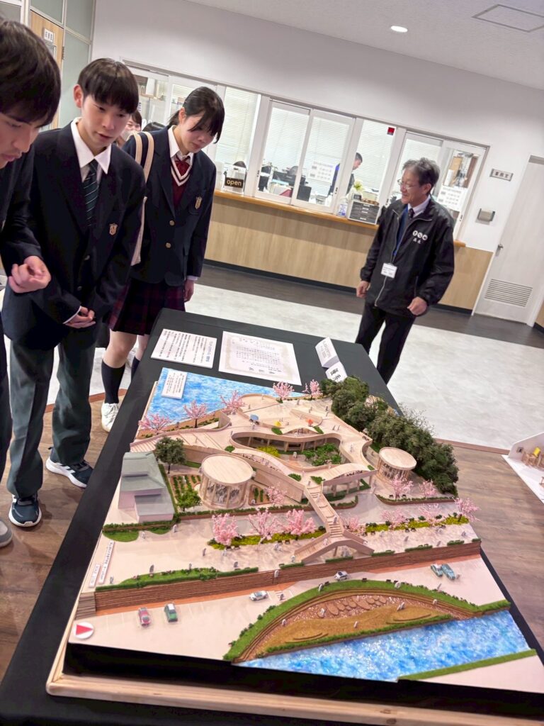 建築学科では、先輩方が制作した模型や作品を見学しました。その精巧さや緻密さを目の当たりにし、ものづくりの現場で求められる集中力や表現力の高さを実感していました。
