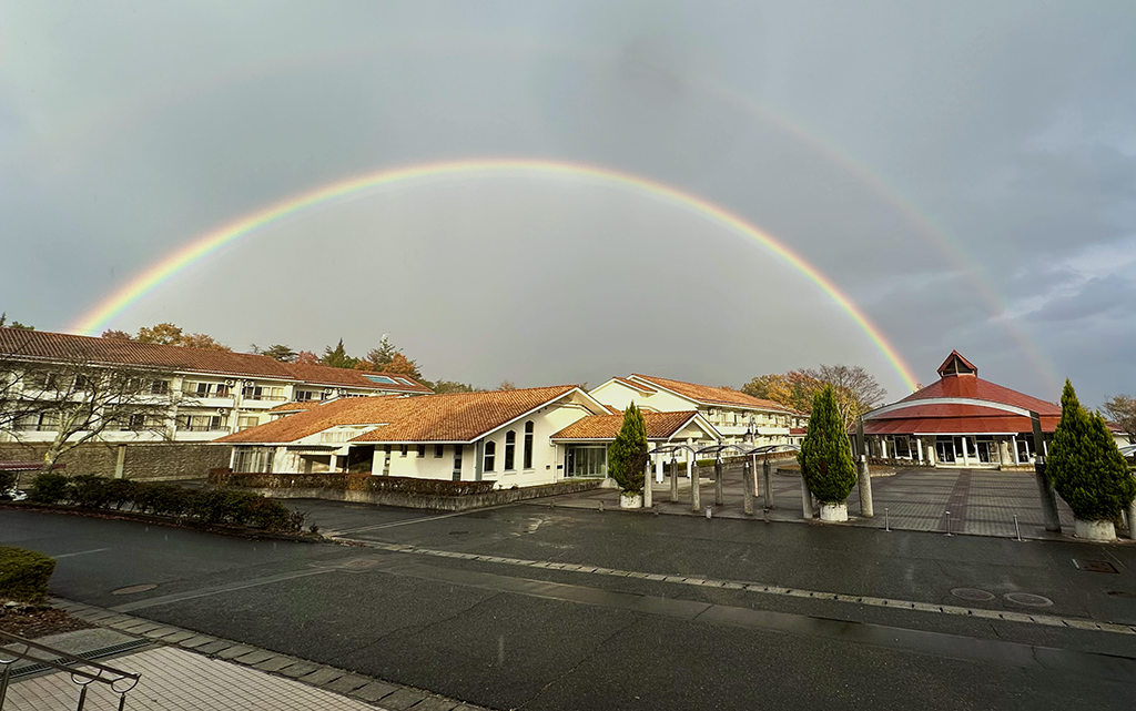 朝の天気予報では「午後からは降ったり、やんだりでしょう…」という微妙な表現。そしていつもの平凡な日常…と思っていたら、下校時間には目の覚めるような「虹」が!一瞬の事でしたが、見られた人はっラッキーでしたね!
